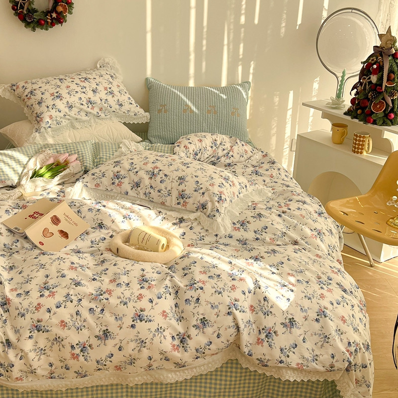 昔可家纺 2022新款全棉仙仙蕾丝碎花四件套 缇香