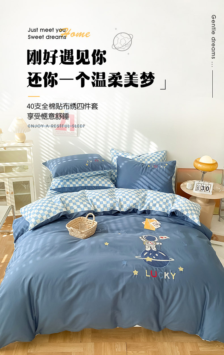 (总)沐辰 2022新款全棉40支绣花太空人四件套