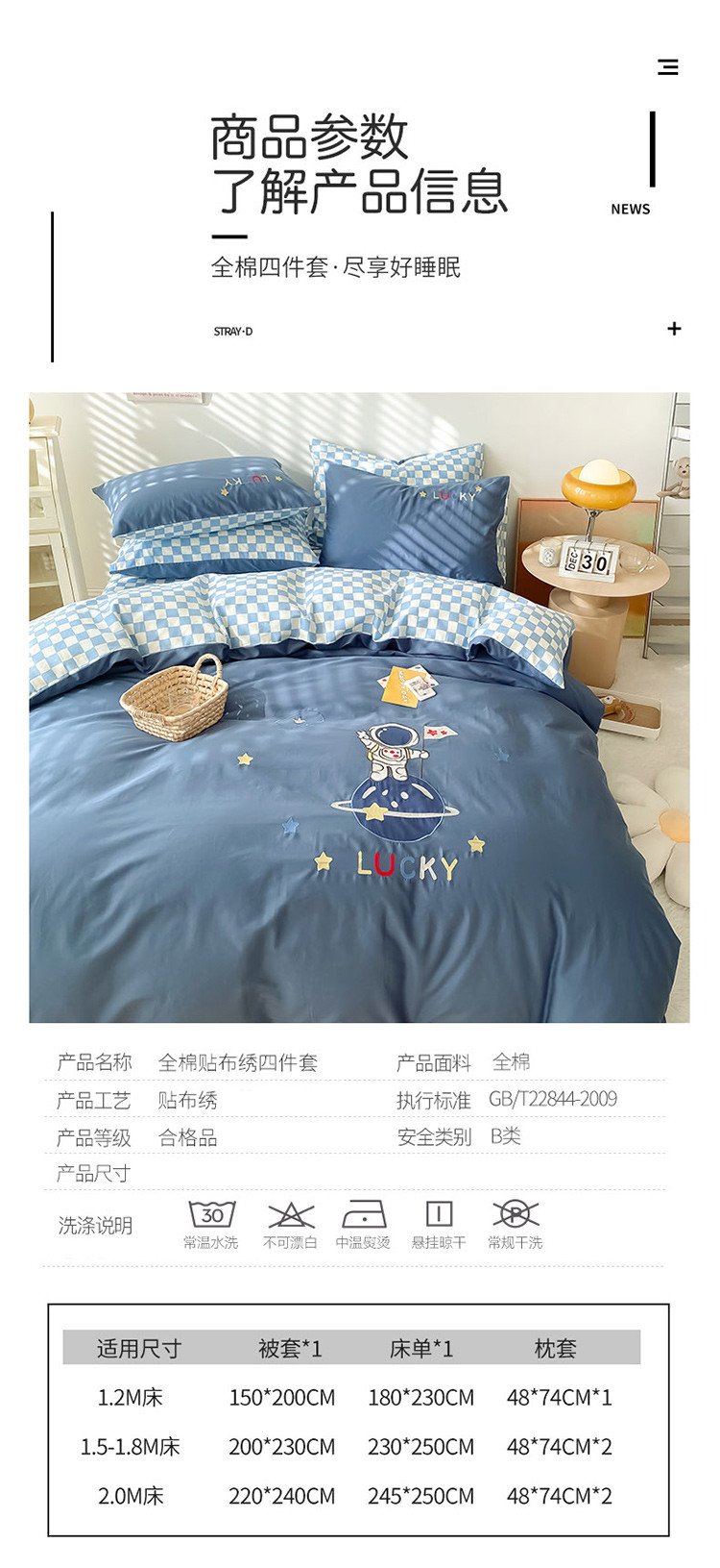 商品名称:(总)沐辰 2022新款全棉40支绣花太空人四件套