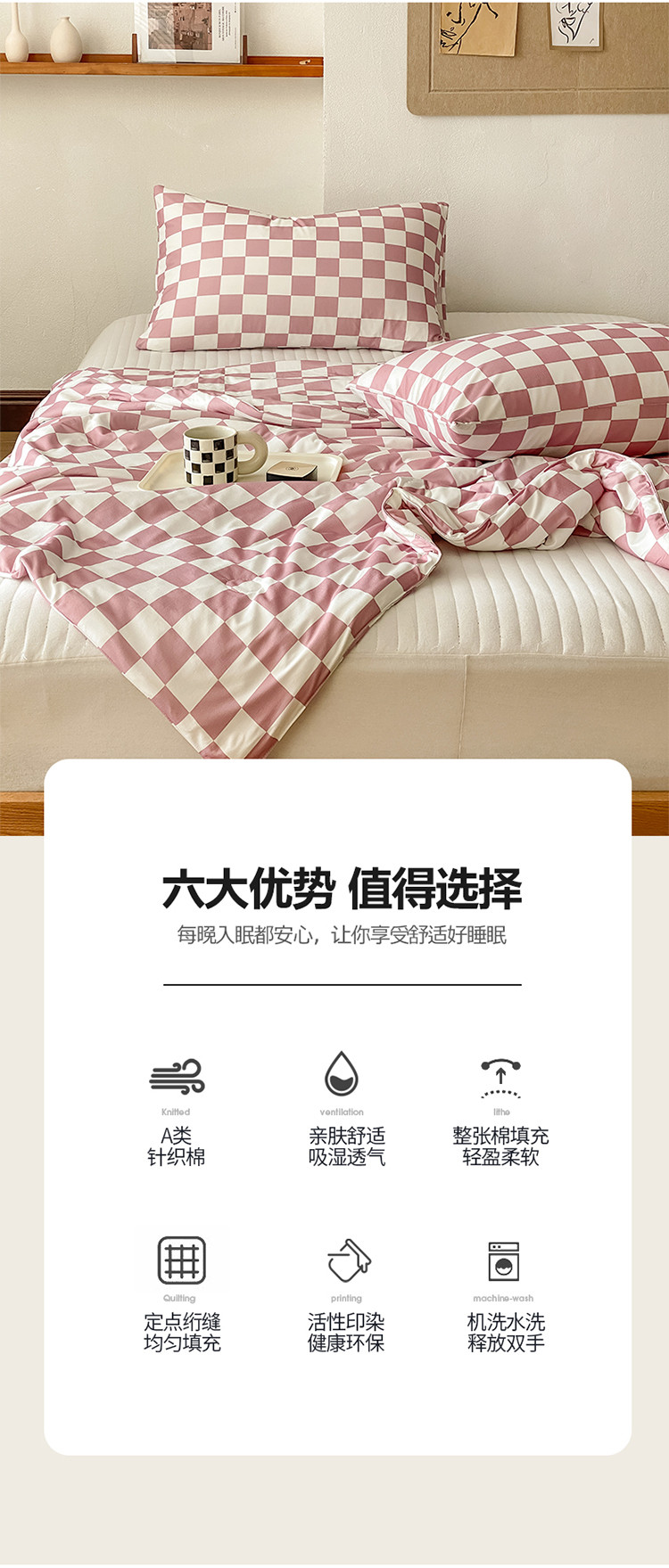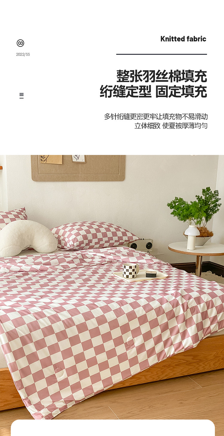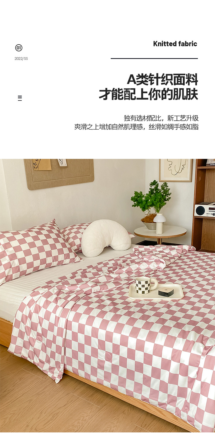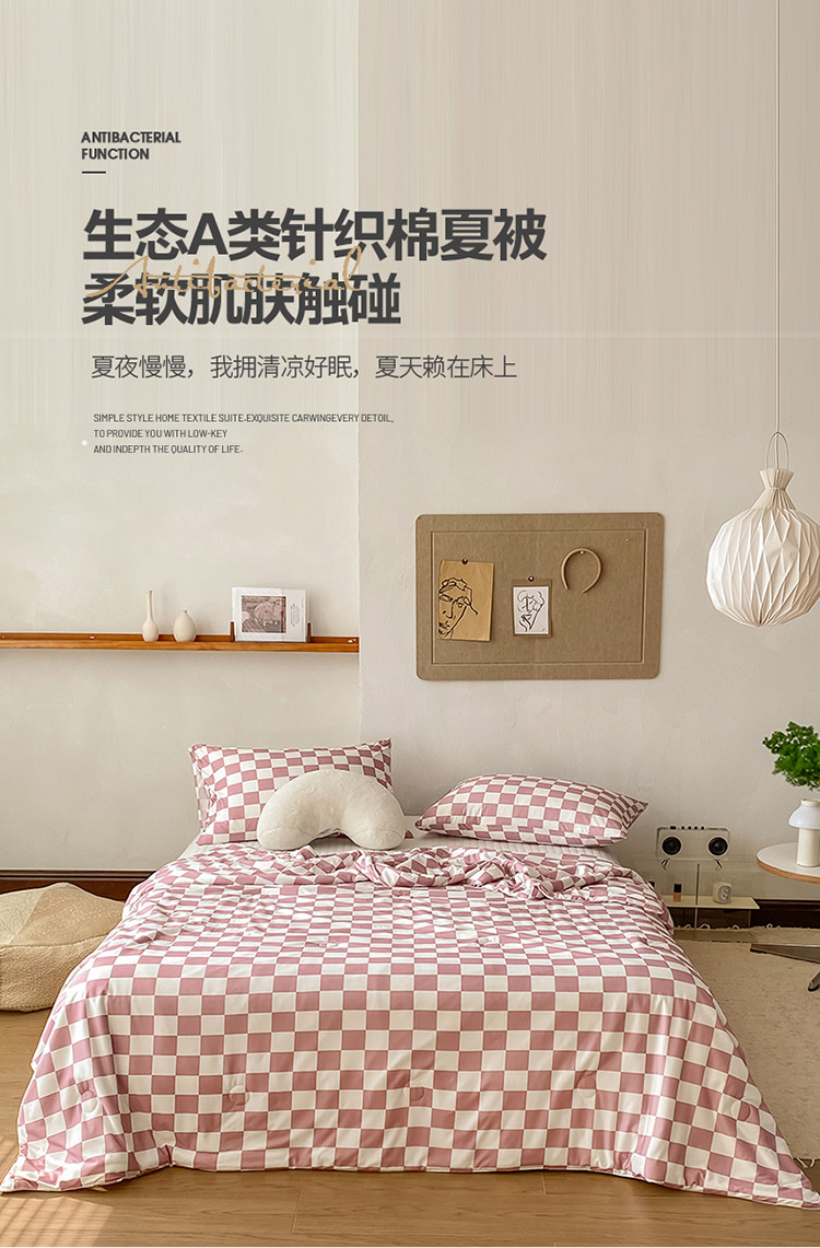 商品名称:寐眠 2022新款生态A类大豆针织棉夏被 棋盘格浅粉