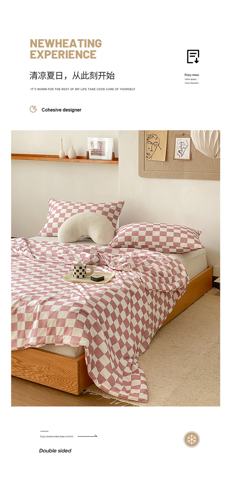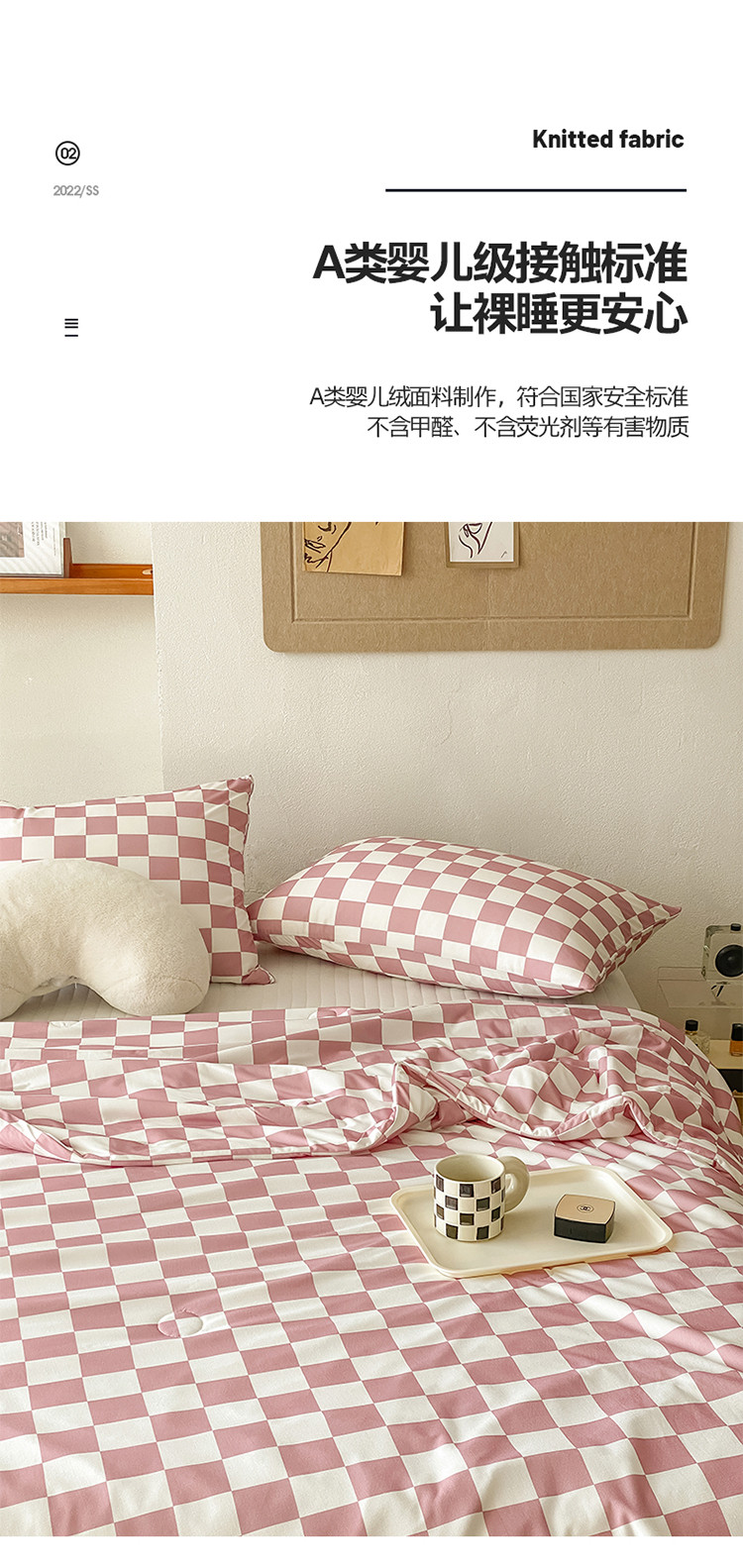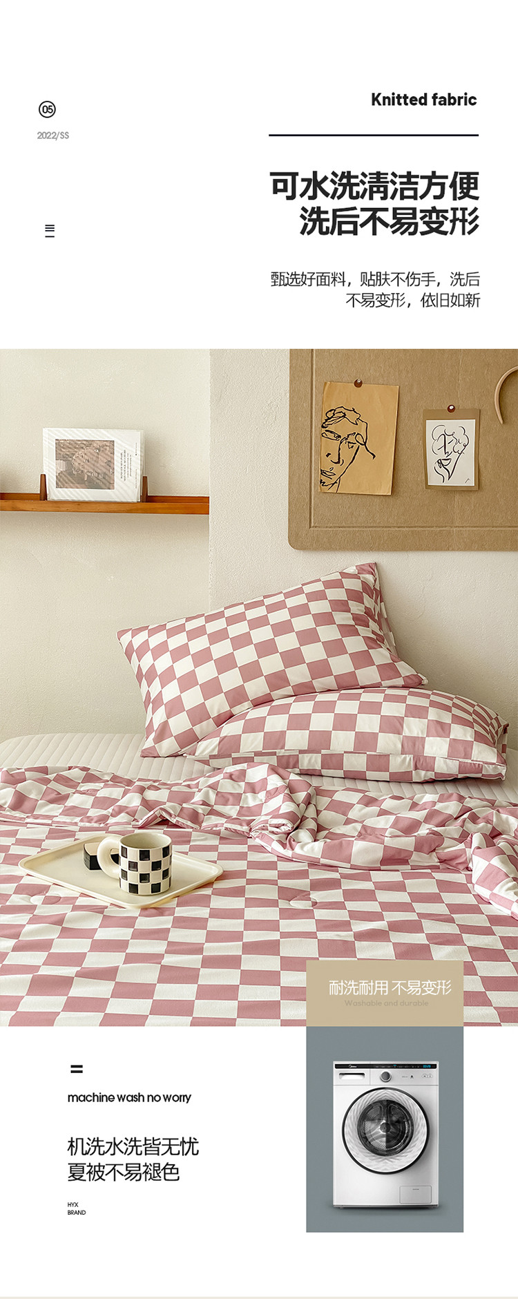 商品名称:寐眠 2022新款生态A类大豆针织棉夏被 棋盘格浅粉