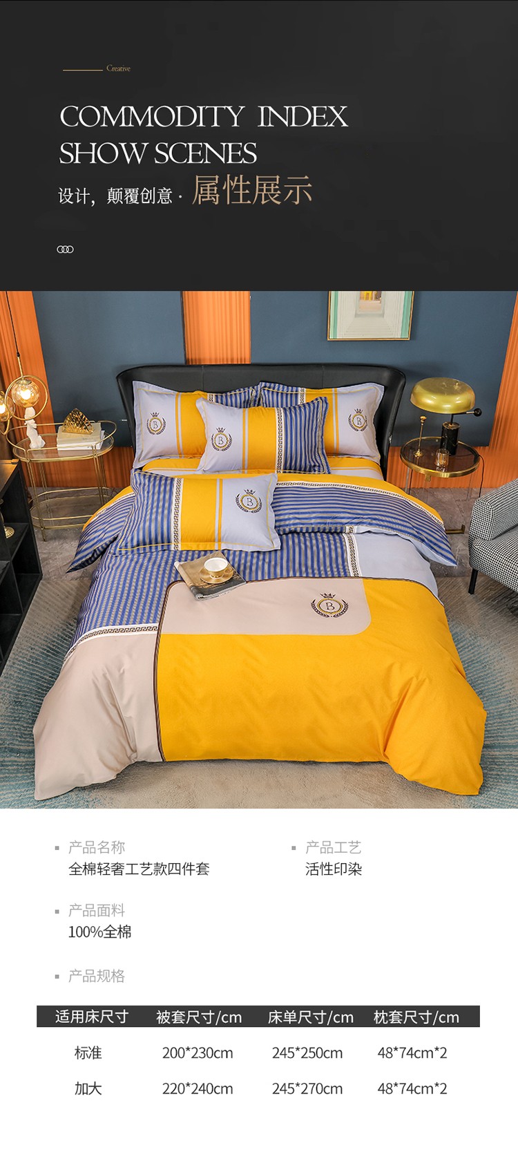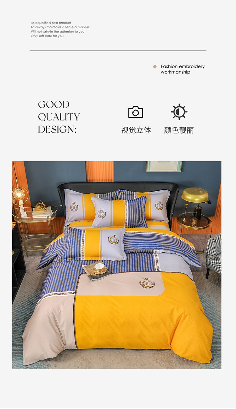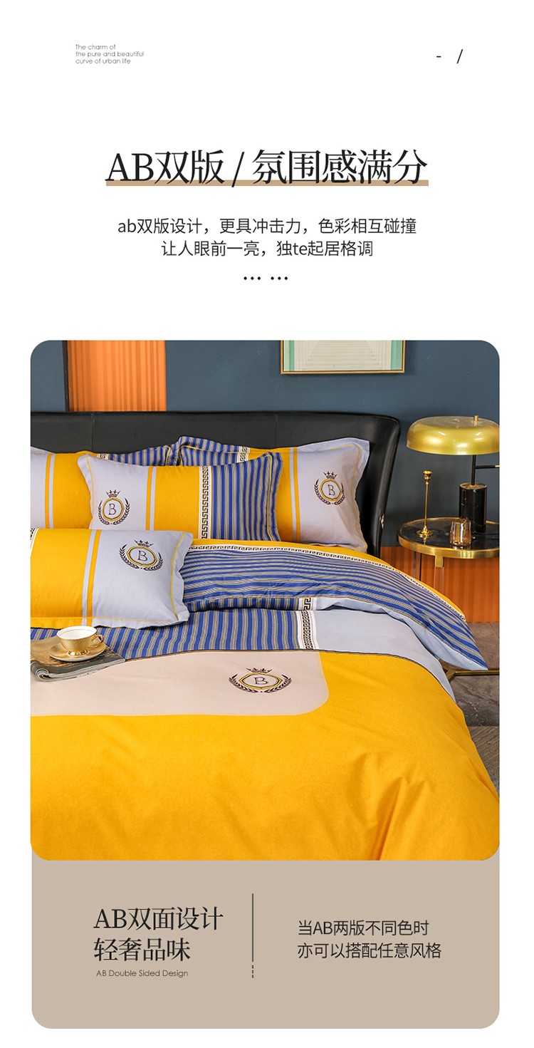 (总)雲归梦 2021新款全棉生态磨毛刺绣四件套,慕思-橙色,慕思-粉紫,慕思-灰,慕思-米黄,慕思-青绿,慕思-天蓝