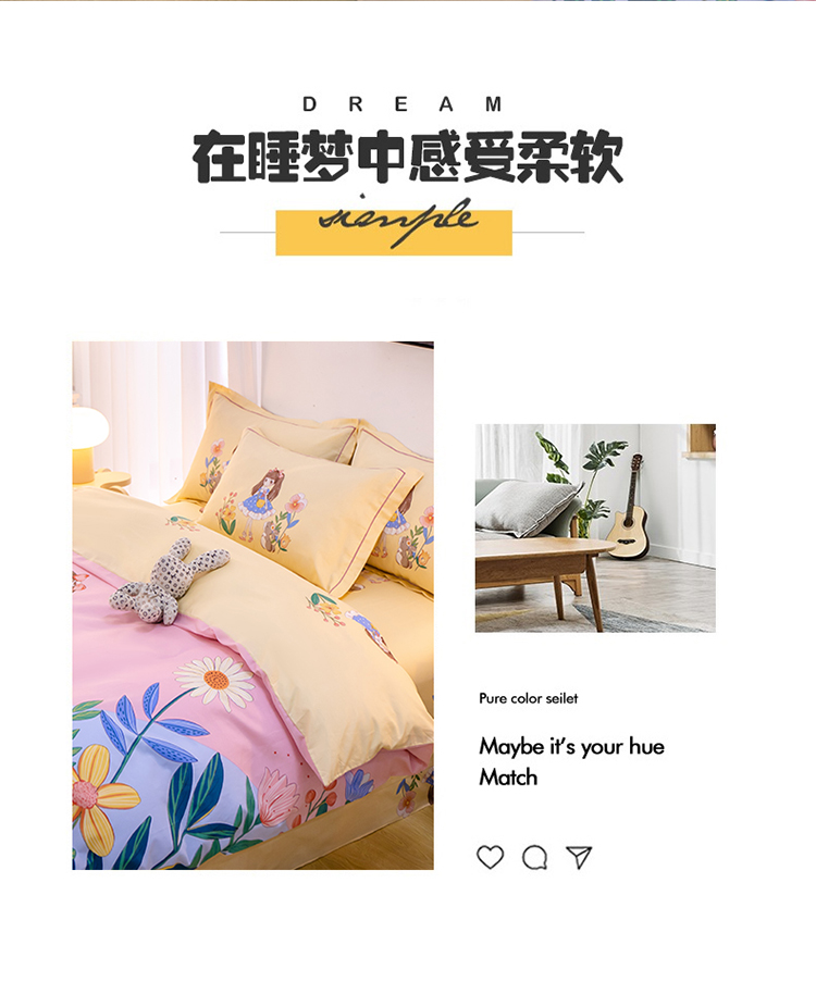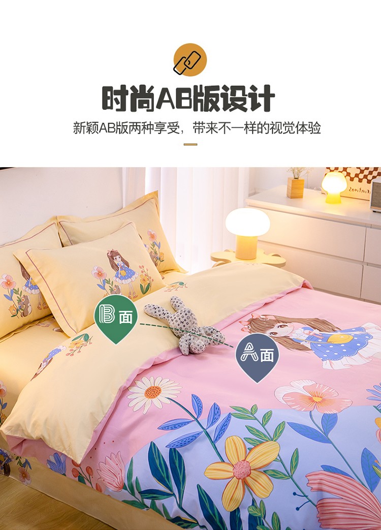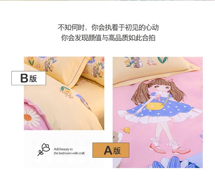 商品名称:雲归梦 2022新款全棉大版四件套 卡通花型 甜心少女