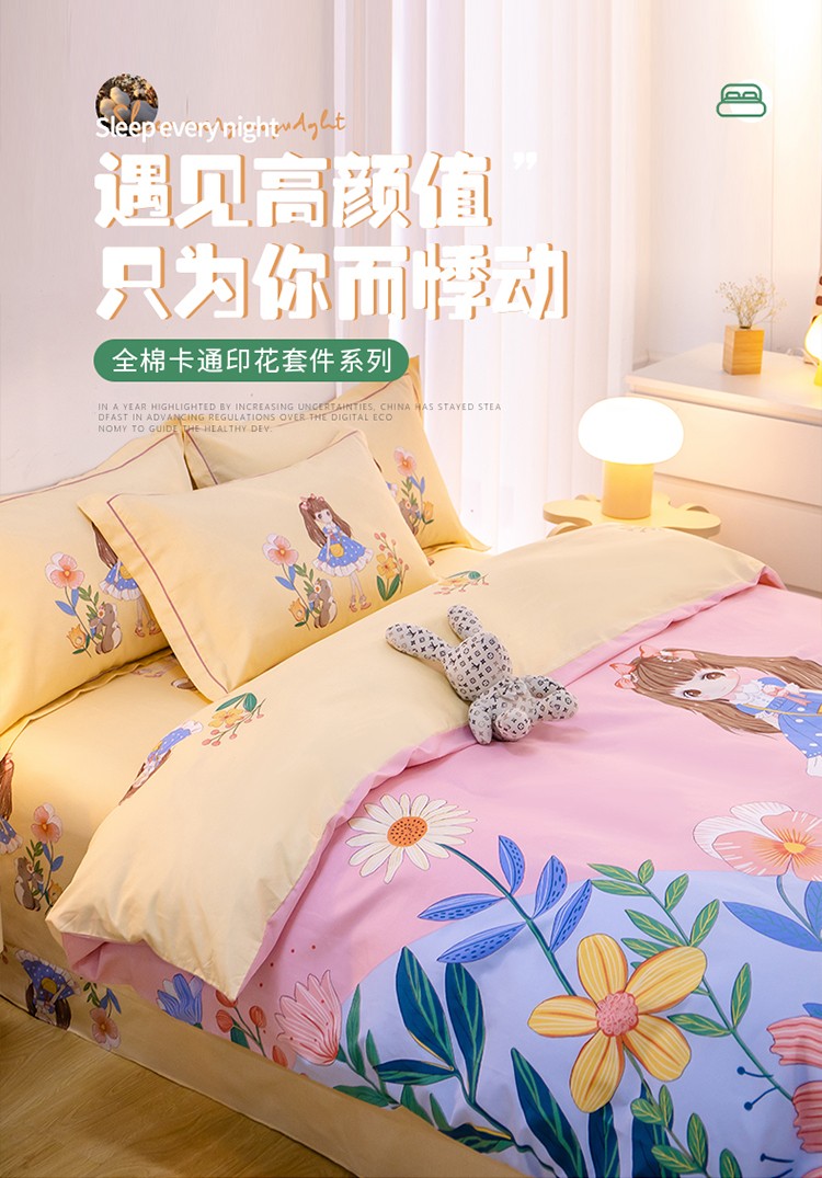 雲归梦 2022新款全棉大版四件套 卡通花型 甜心少女