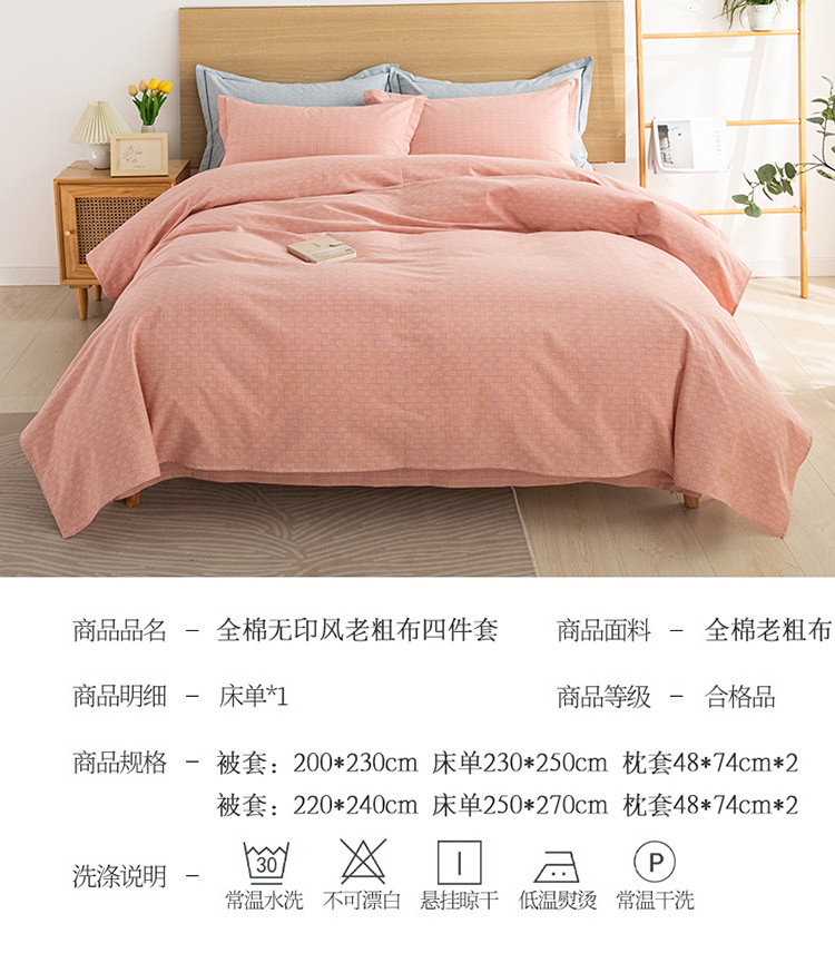 商品名称:杜先生 2023新款全棉无印风老粗布四件套直播爆款 无印风影格-玉