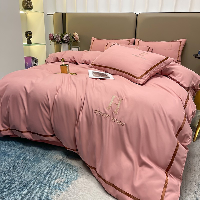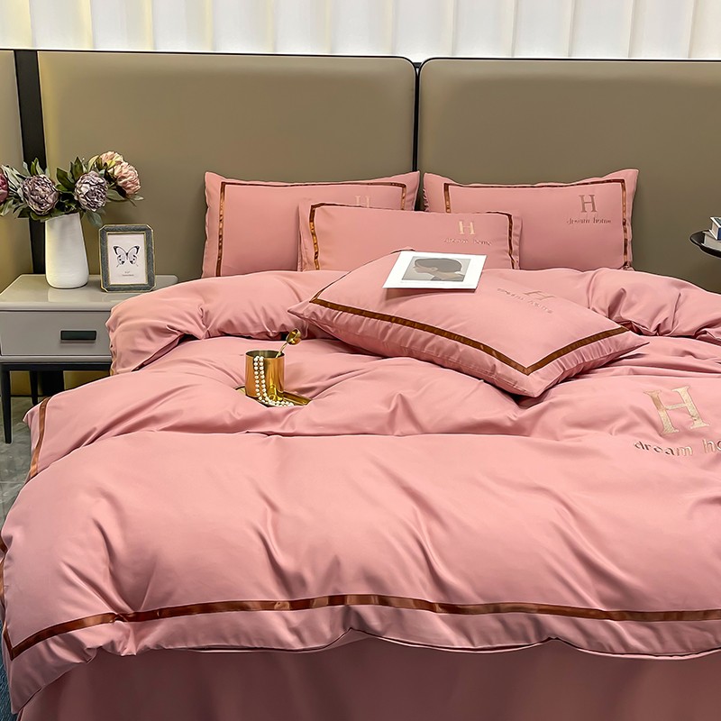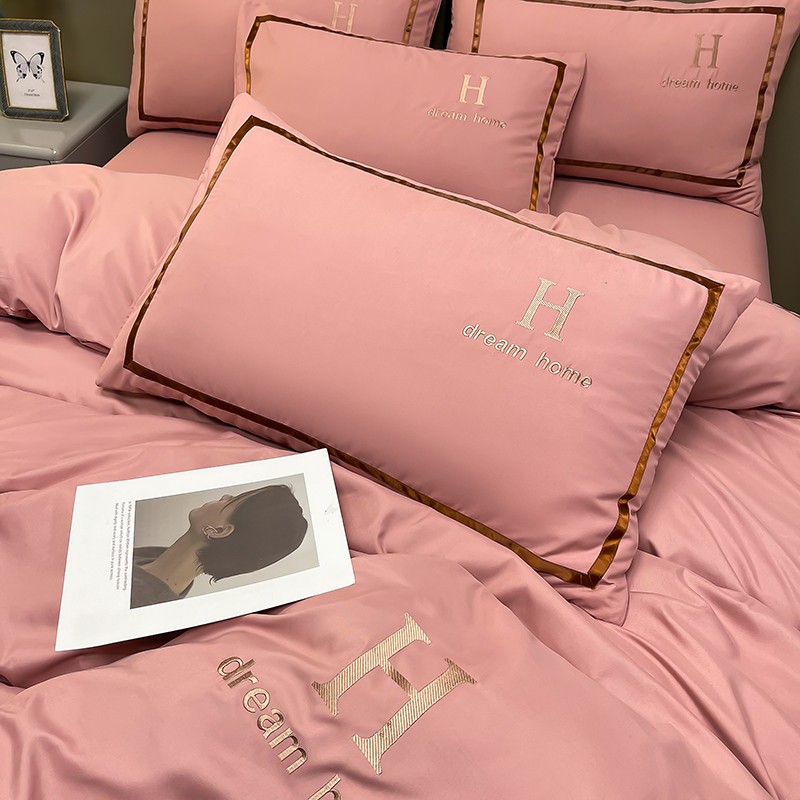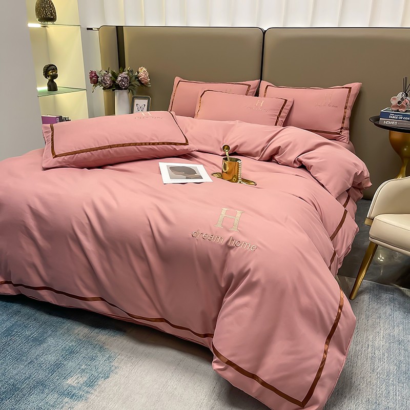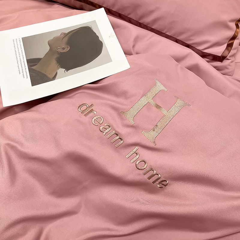 千希家纺 2022新款直播大H水洗棉绣花磨毛四件套大H-浅豆沙