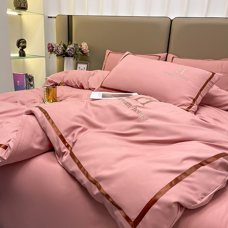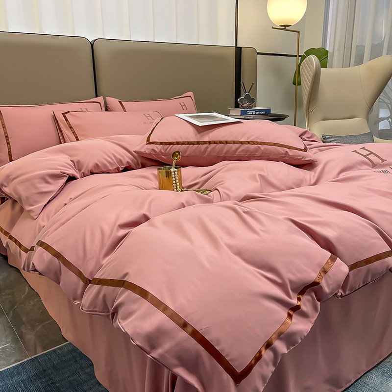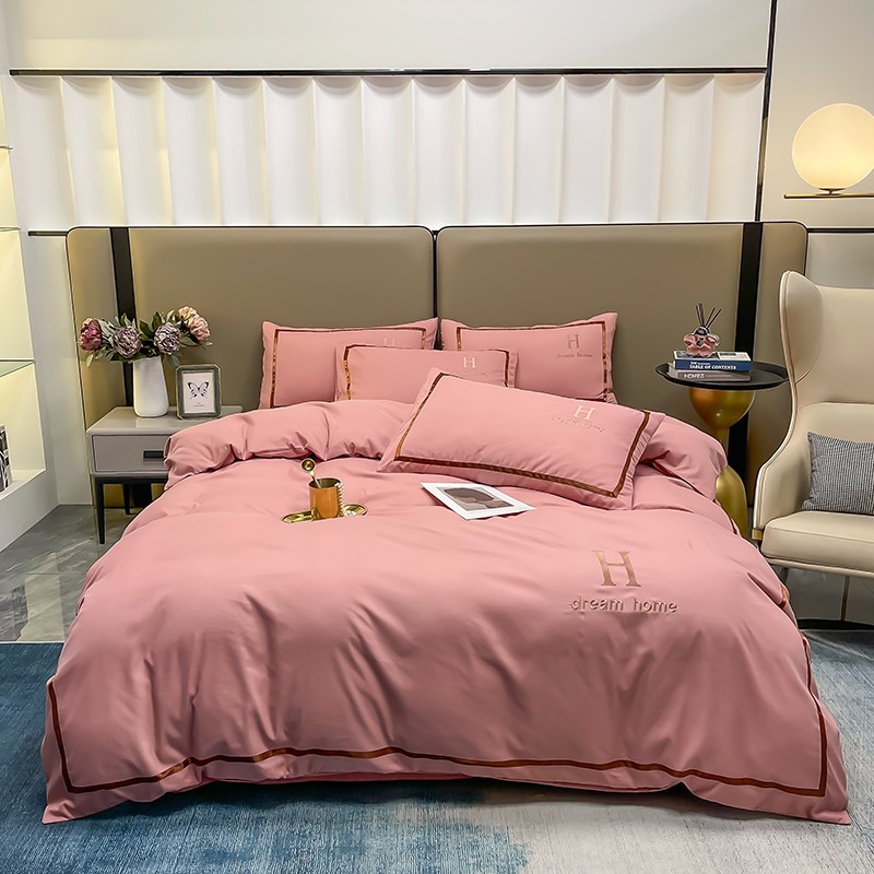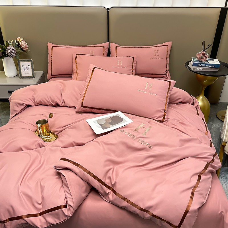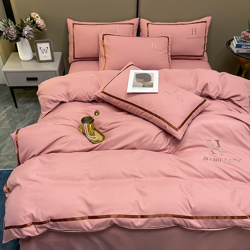 千希家纺 2022新款直播大H水洗棉绣花磨毛四件套大H-浅豆沙