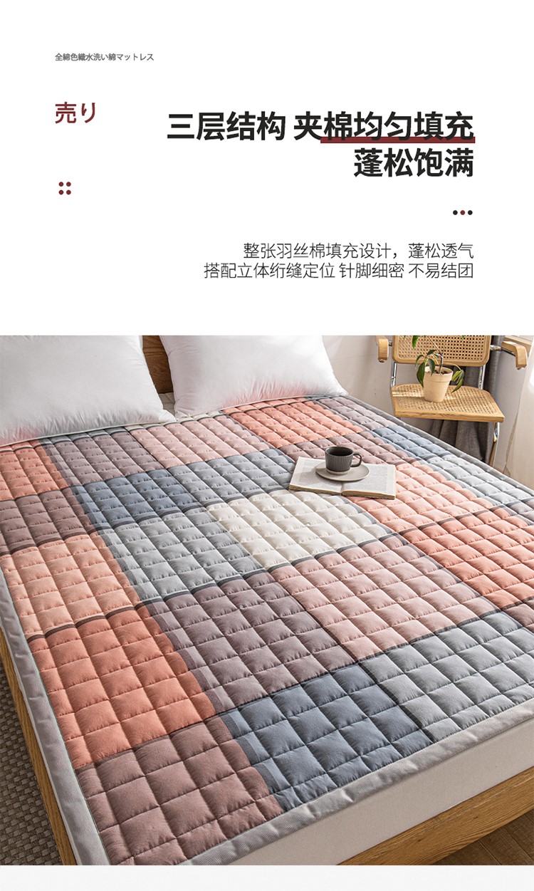 商品名称:东宇 2022新款A类全棉色织水洗棉夹棉床垫 柏雅桔