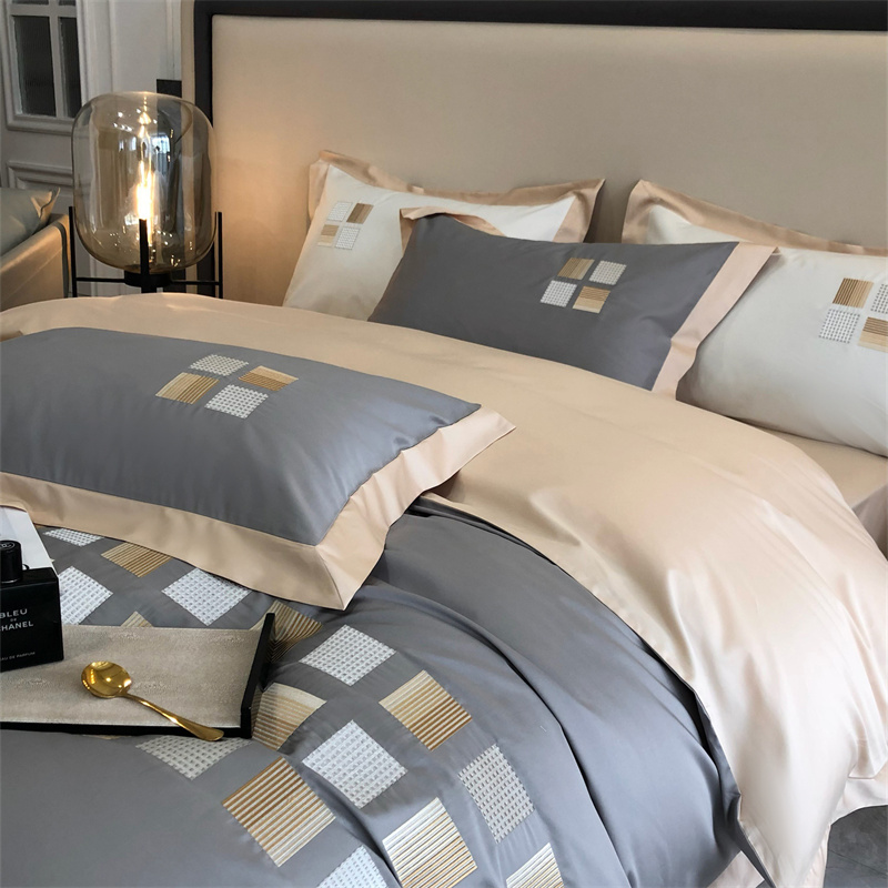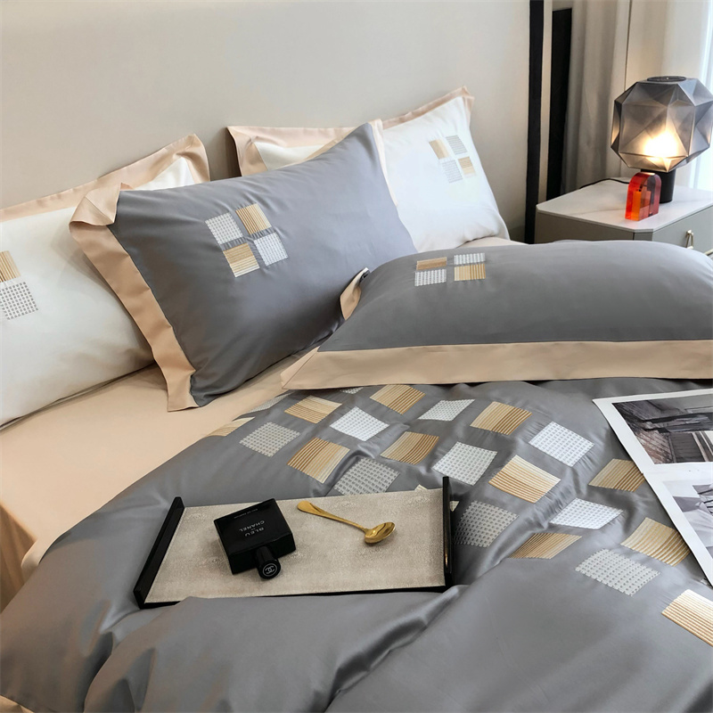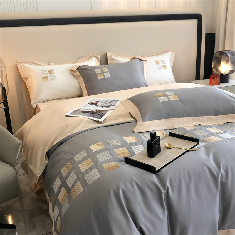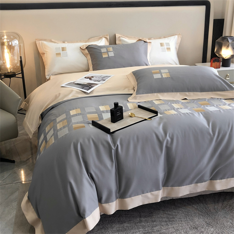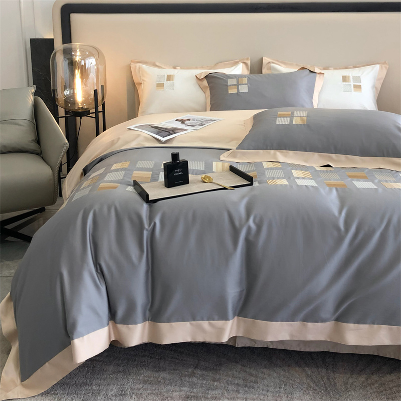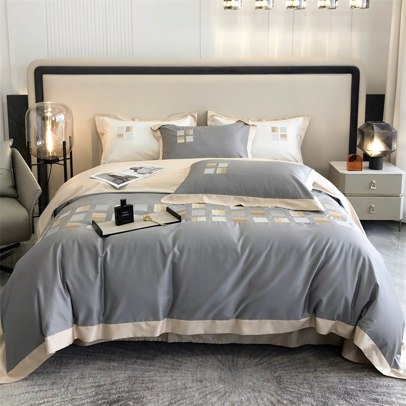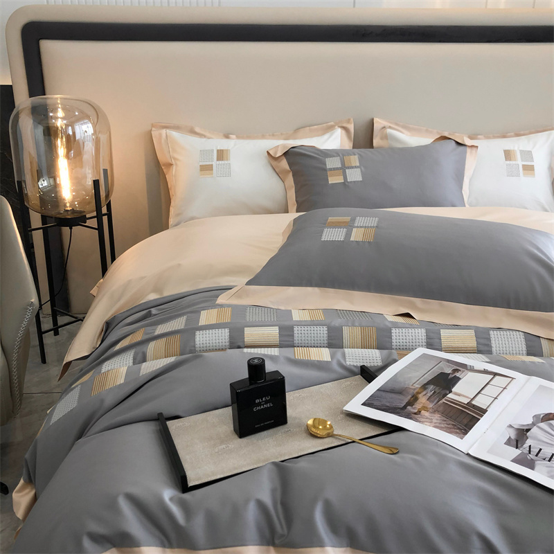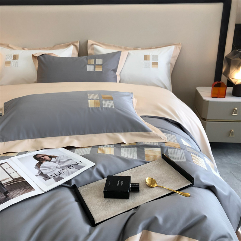 商品名称:太古汇 2022新款长绒棉高定绣花魔方四件套场景一 魔方-灰色