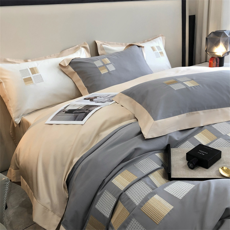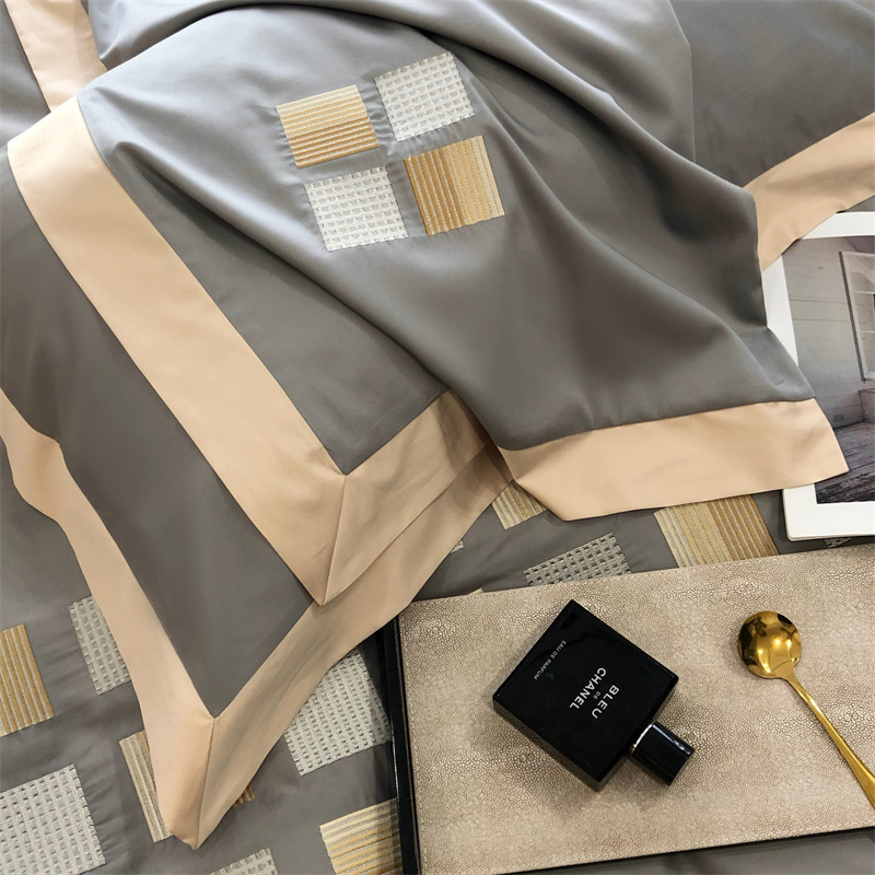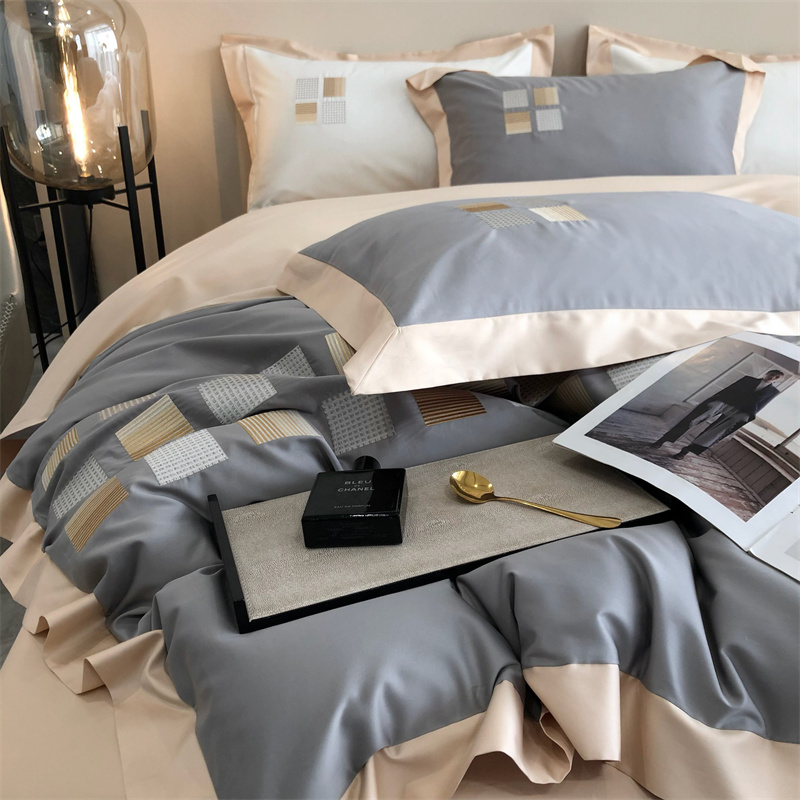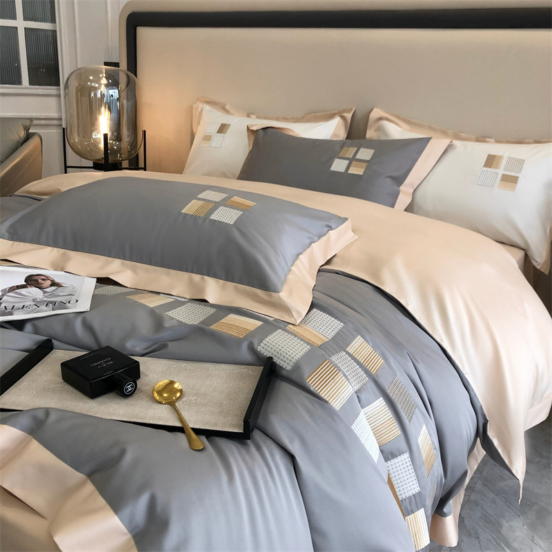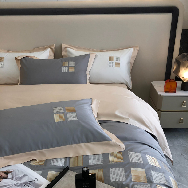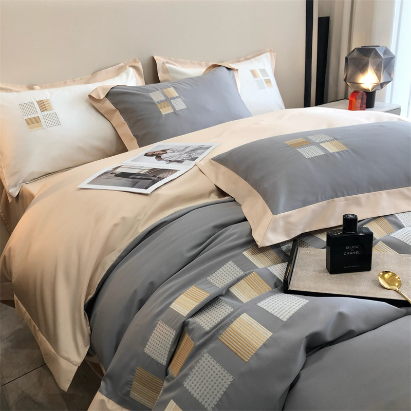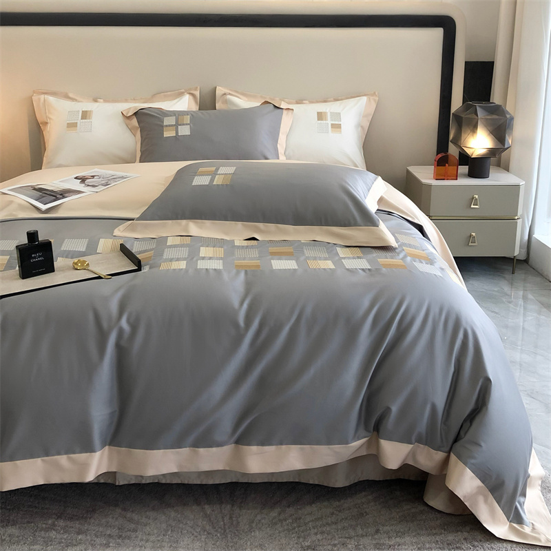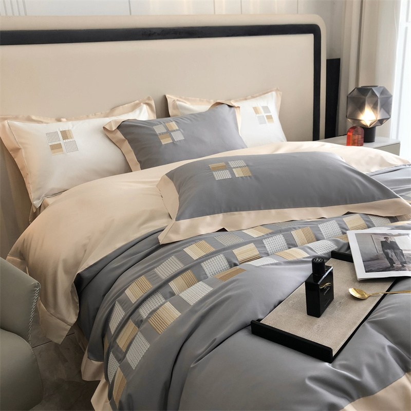 商品名称:太古汇 2022新款长绒棉高定绣花魔方四件套场景一 魔方-灰色