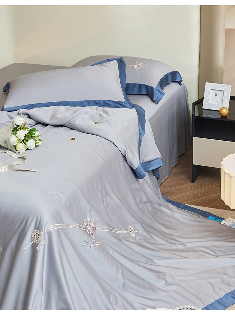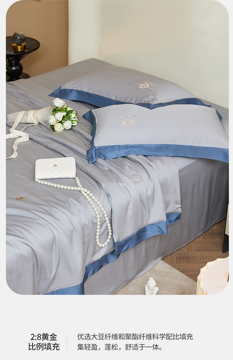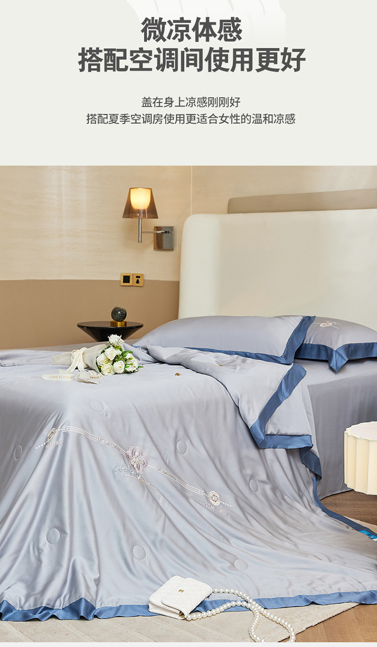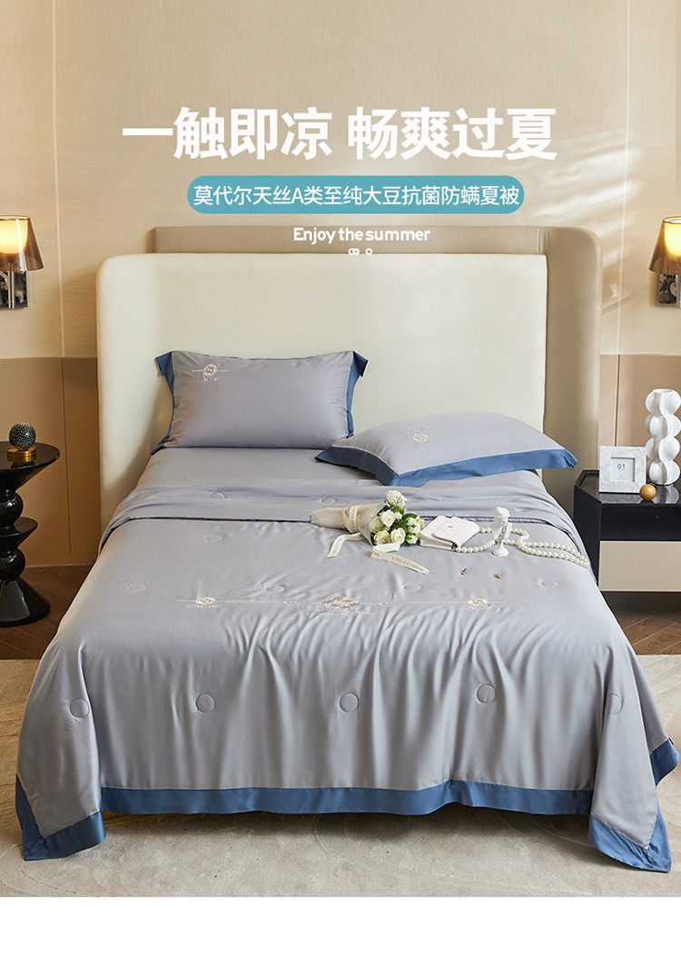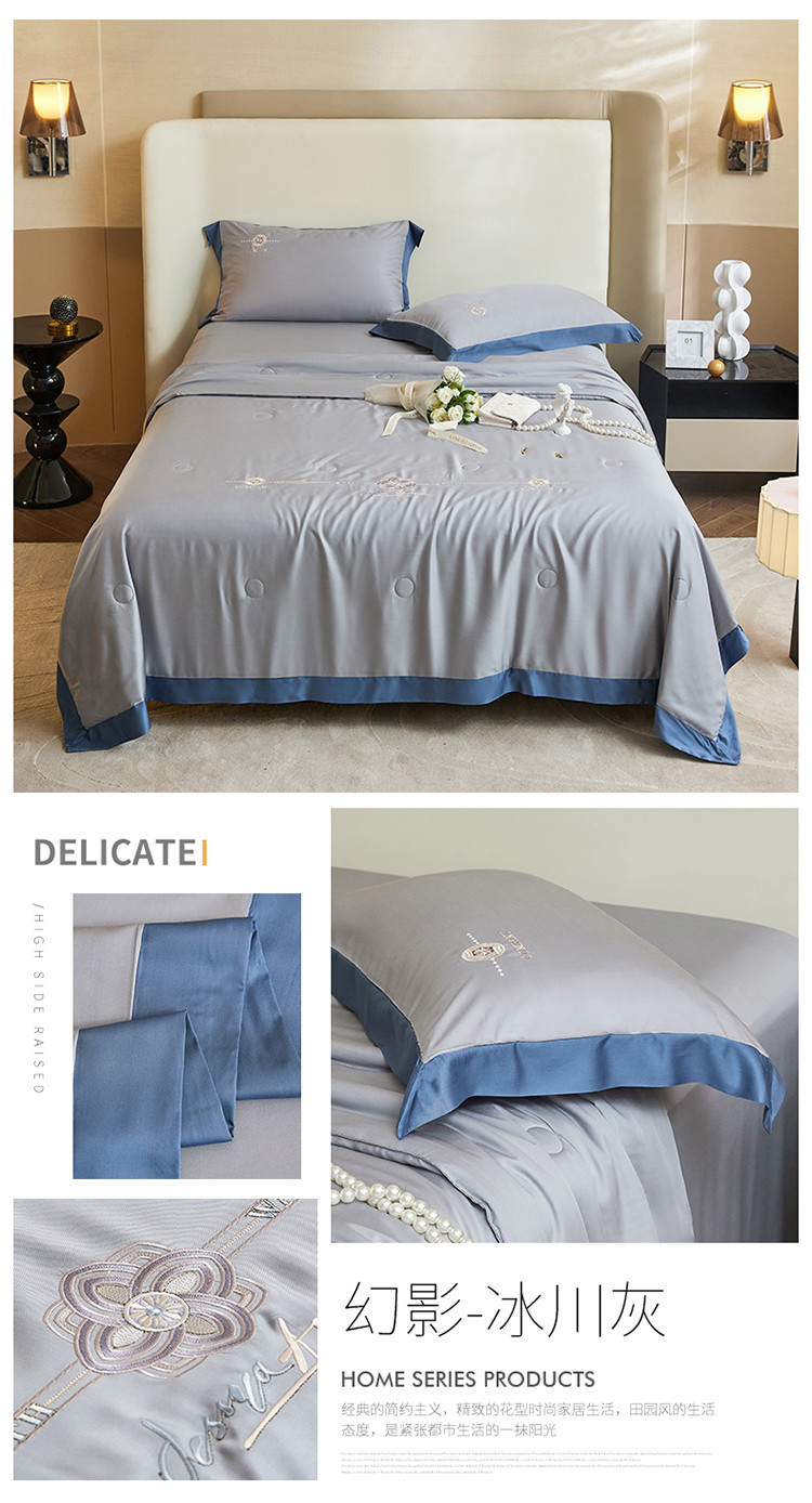 当前位置: 91家纺网 > 商品网购 > 床品套件 > 四件套 > 夏被四件套 > 2022新款莫代尔天丝A类至纯大豆抗菌防螨夏被 幻影-冰川灰