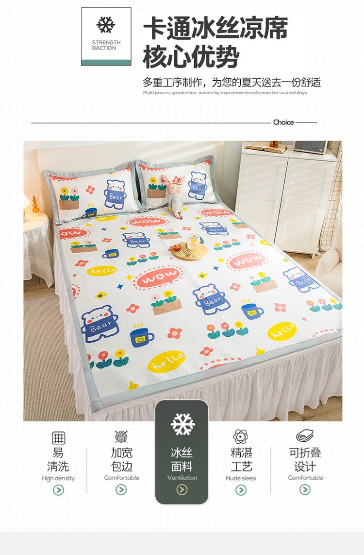 商品名称:琪格格 2022新款复合冰丝席凉席 抱抱熊复合席