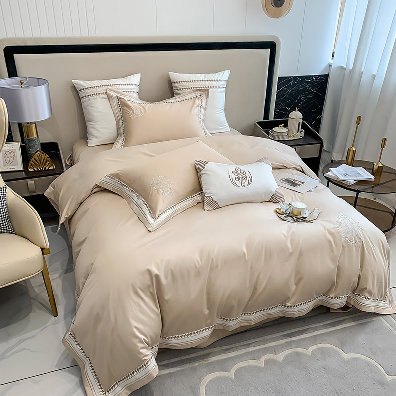 商品名称:曼布缇 2025新款工艺款100s长绒棉绣花四件套-马丽娜