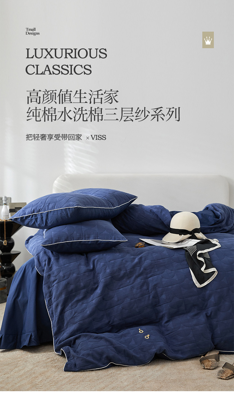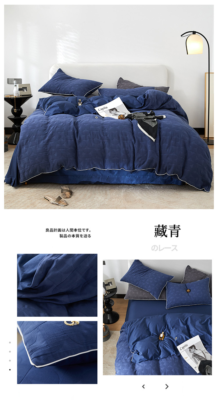 商品名称:名品优仓 2023新款纯棉水洗棉三层纱提花四件套 藏青