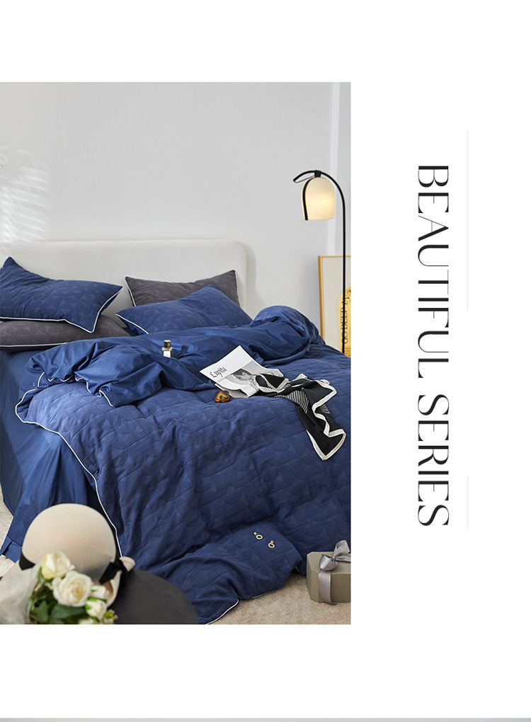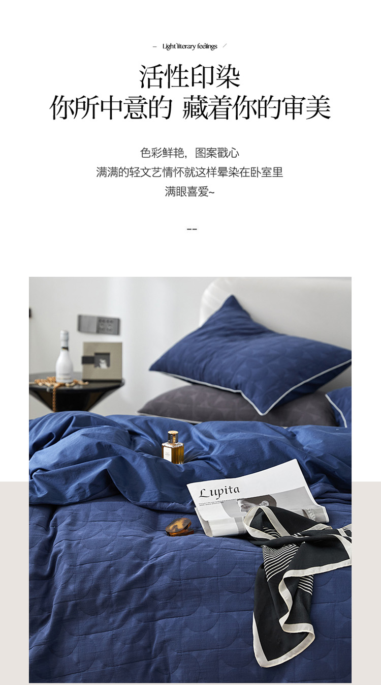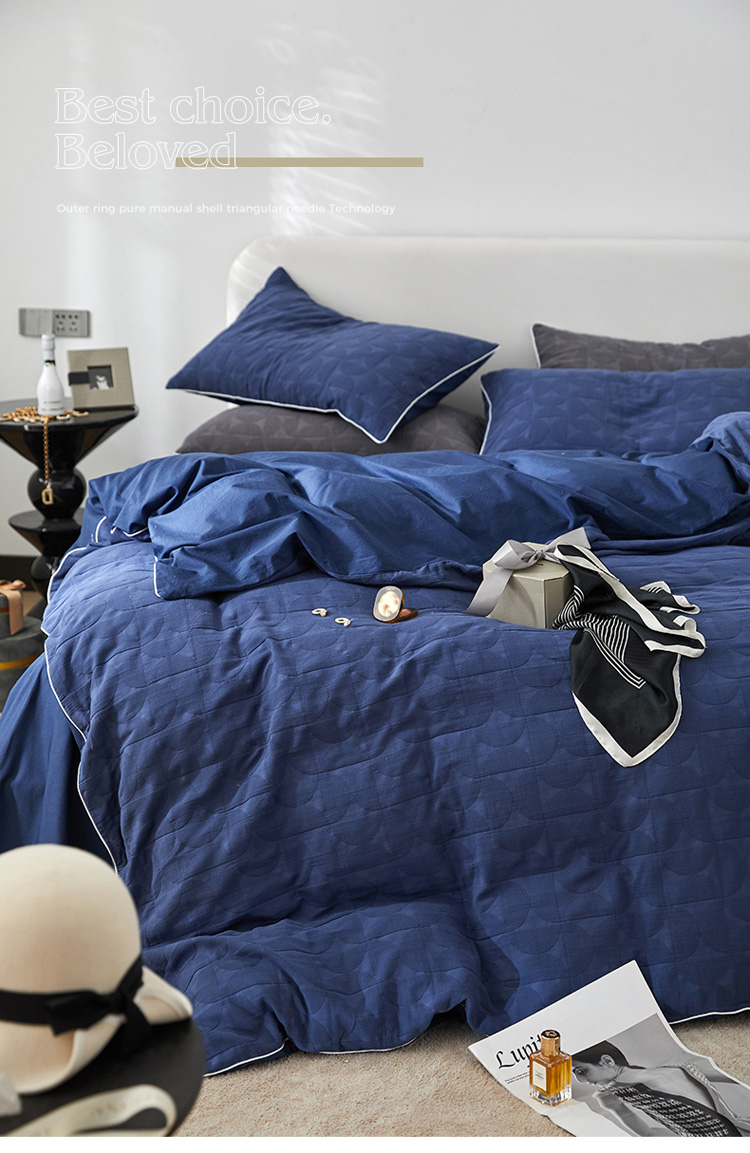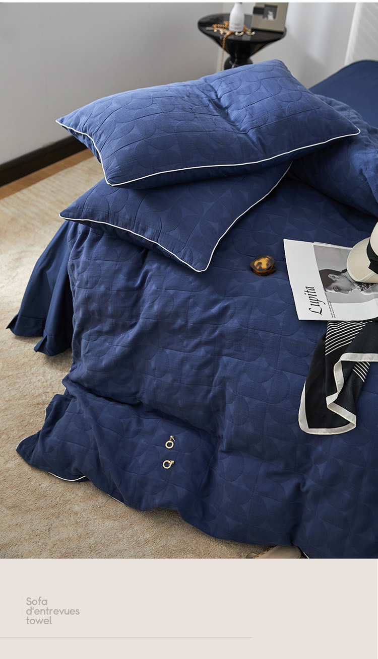 名品优仓 2023新款纯棉水洗棉三层纱提花四件套 藏青
