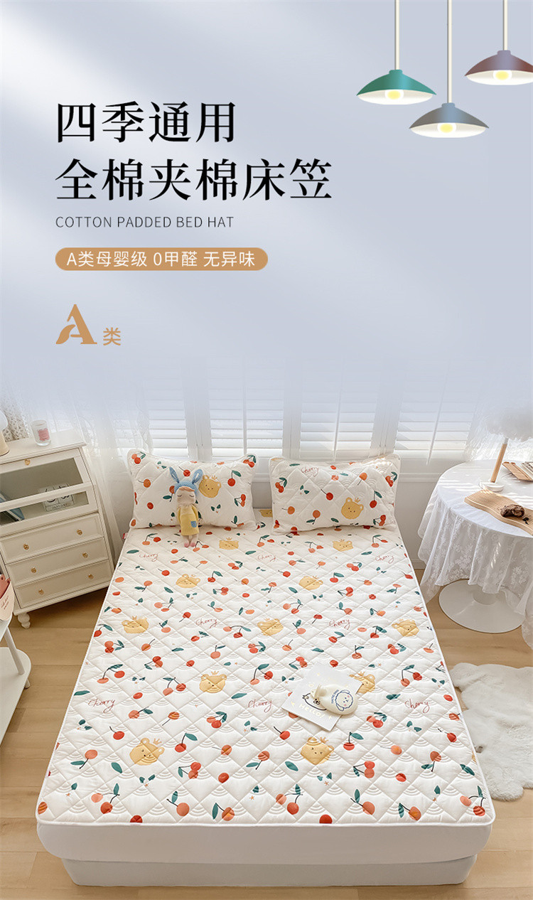 (总)鑫钰 2025新款A类纯棉夹棉床笠学生宿舍专用90x190-80x190-花漾山茶格,花漾山茶格-粉,花漾山茶格-蓝,花漾山茶格-灰
