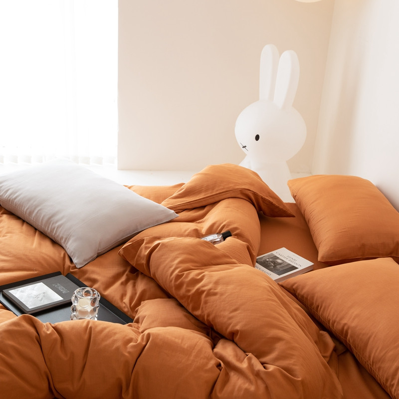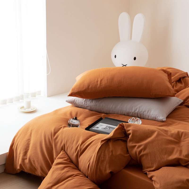 当前位置: 91家纺网 > 商品网购 > 床品套件 > 四件套 > 全棉普通四件套 > 8小时家纺 2022新款全棉双层纱四件套 焦糖色