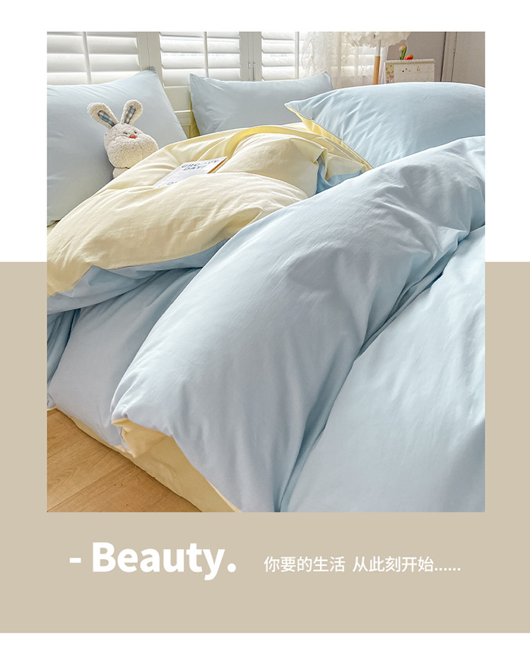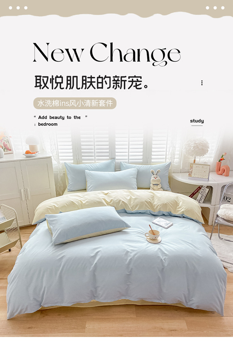 雨帆家纺 2023新款ins风水洗棉磨毛四件套 蓝芝士双拼