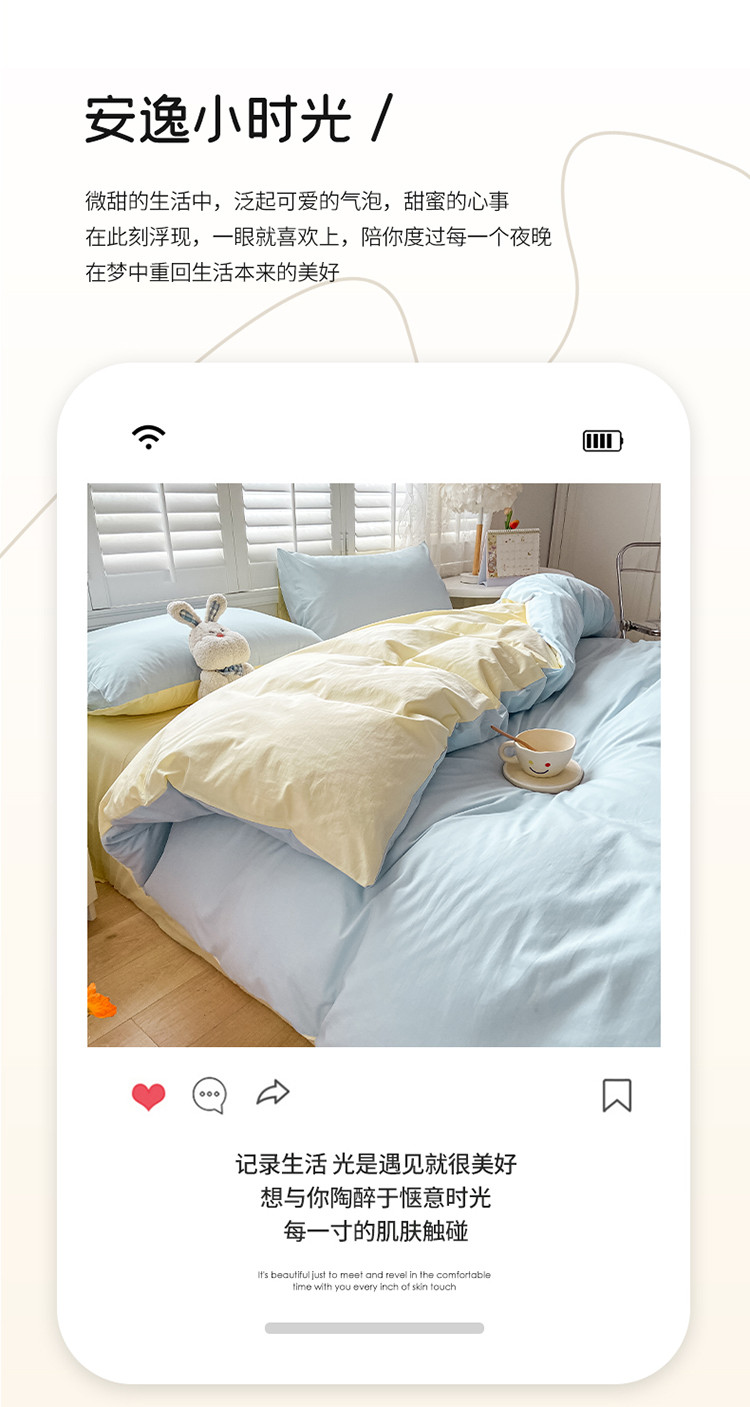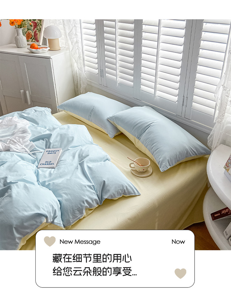 商品名称:雨帆家纺 2023新款ins风水洗棉磨毛四件套 蓝芝士双拼