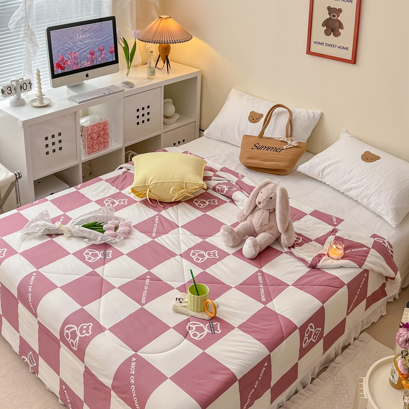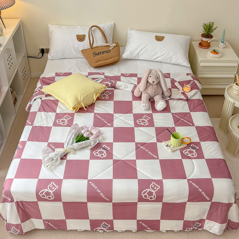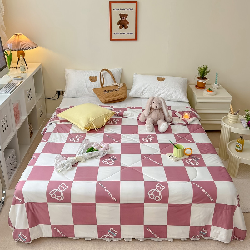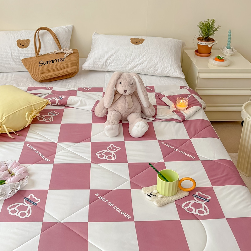 商品名称:顾里家纺 2022新款牛奶针织棉夏被-实拍 方块小熊豆沙