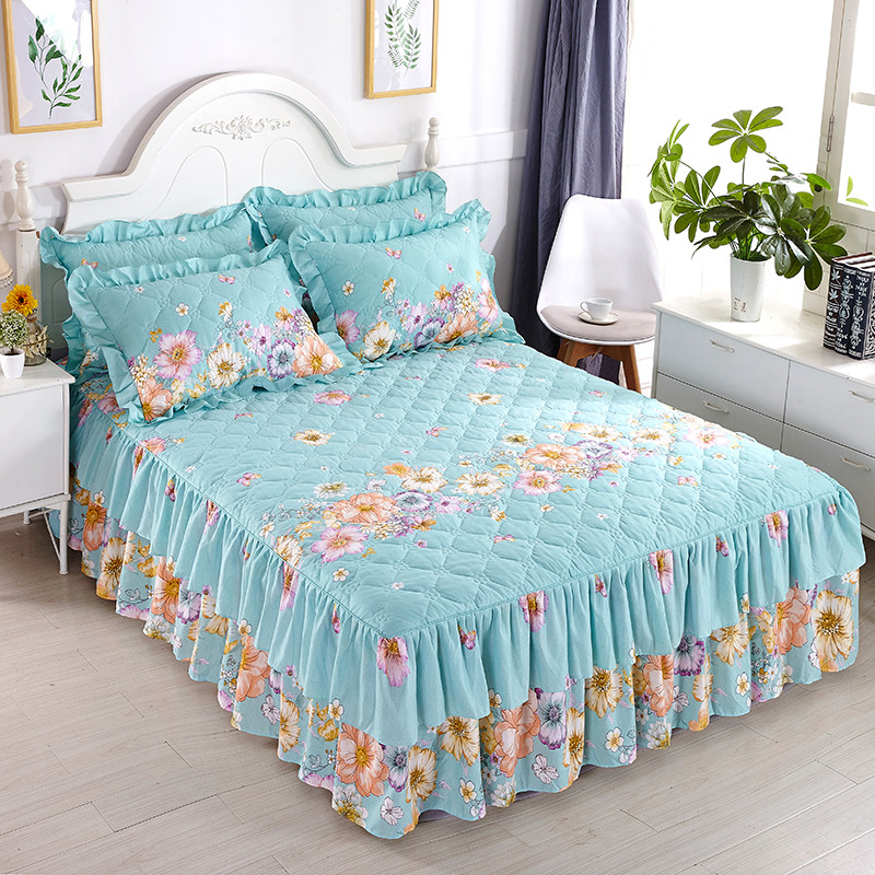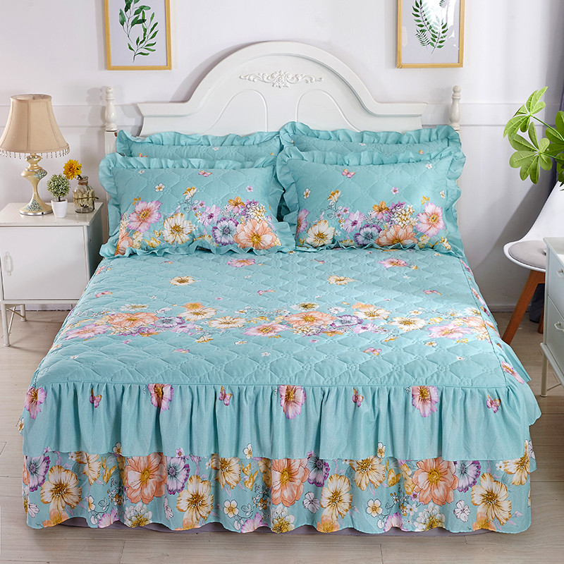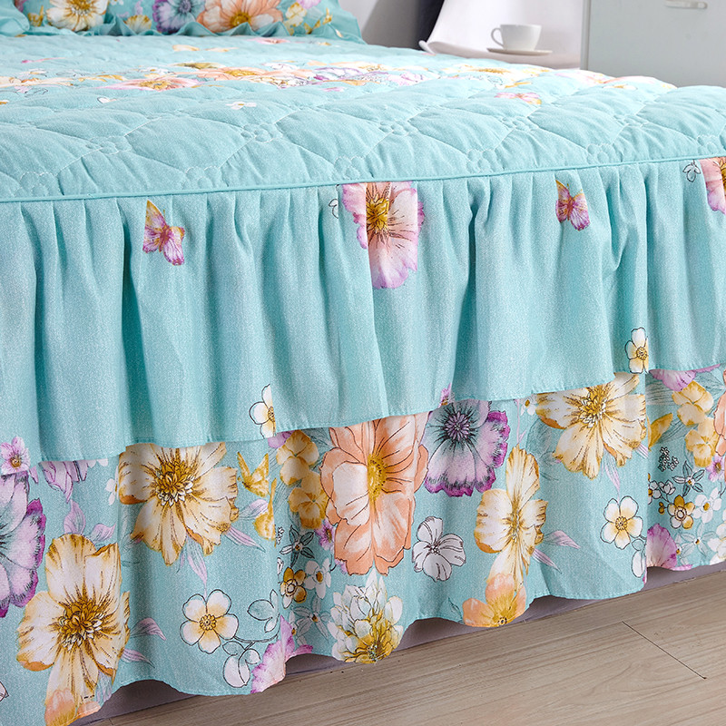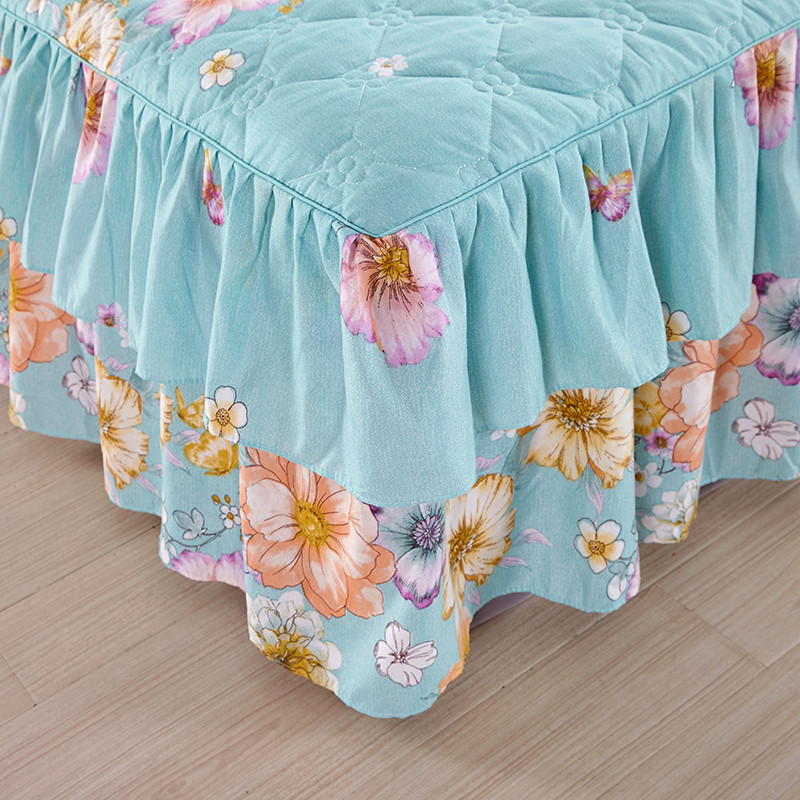 当前位置: 91家纺网 > 商品网购 > 床品套件 > 三件套 > 美莱 2022新款夹棉加厚床裙单件床罩床裙防滑保护套 甜美花语-绿