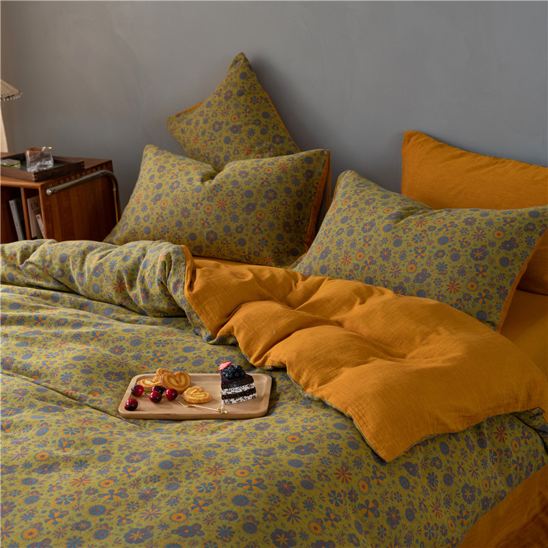 商品名称:馨蕊 2022新款轻复古法式系列双层纱提花四件套 蔷薇-暖橙