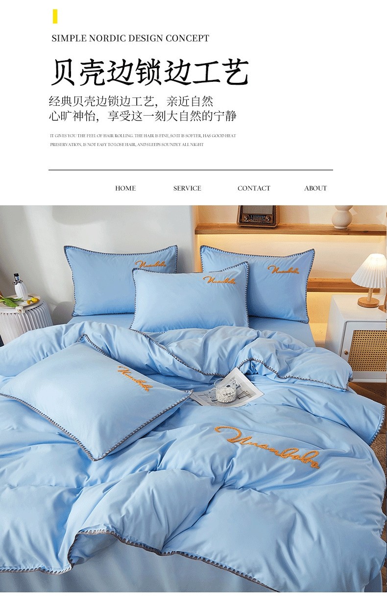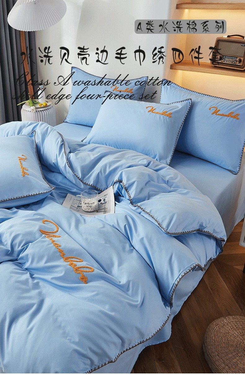 当前位置: 91家纺网 > 商品网购 > 床品套件 > 四件套 > 水洗棉四件套 > 啊雅家居 2025新款A类水洗棉贝壳边毛巾绣四件套 时尚天兰