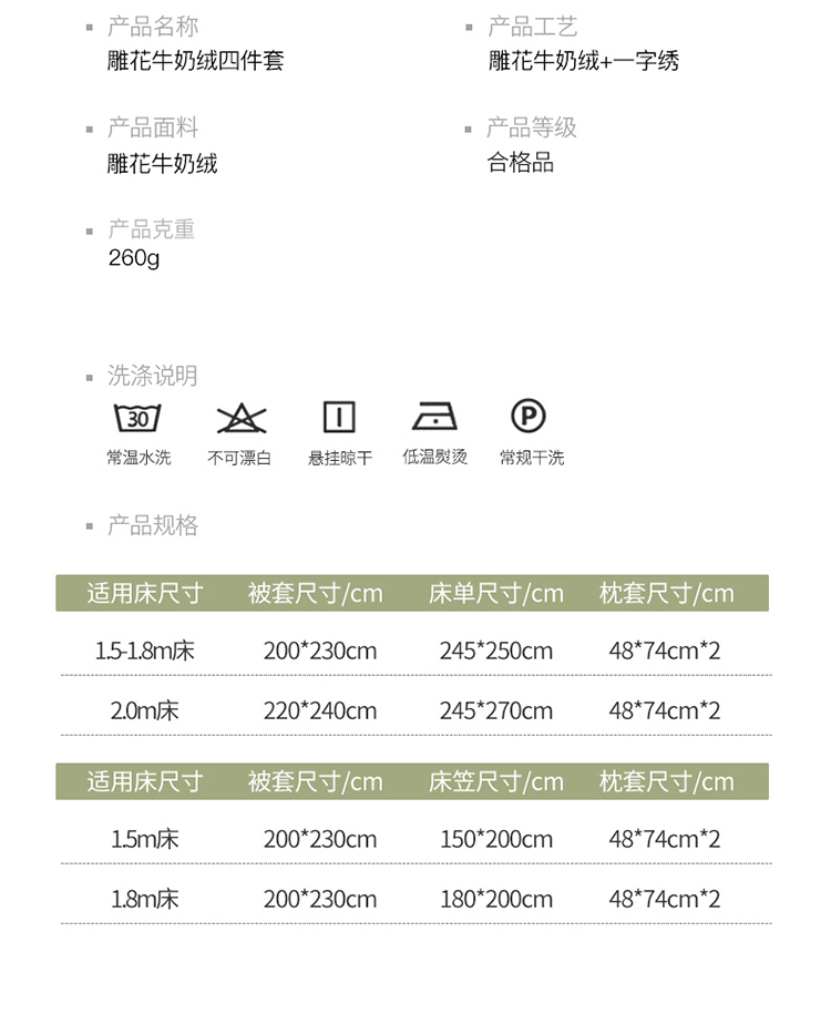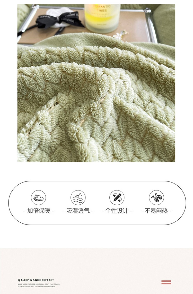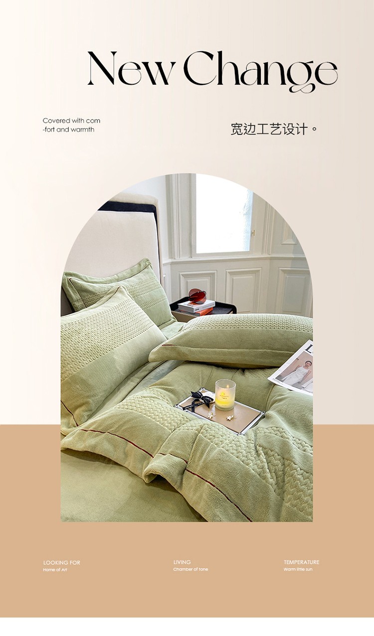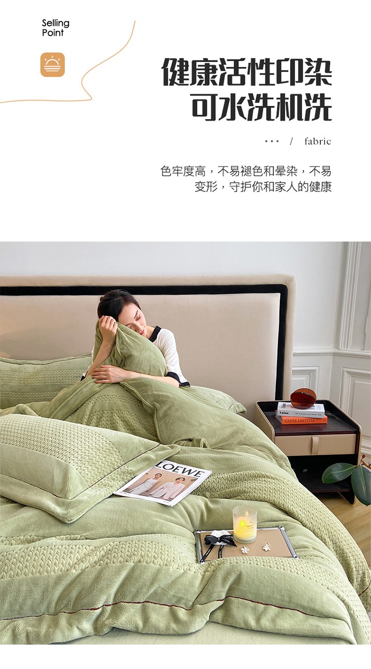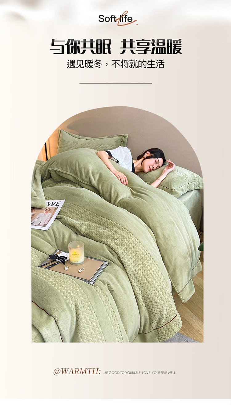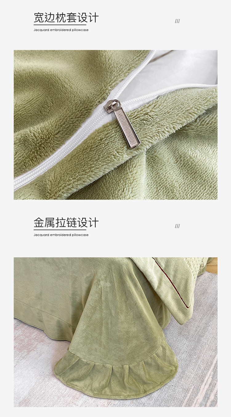 商品名称:嗯呢 2023新款A类高克重轻奢雕花牛奶绒四件套 大麦-豆绿