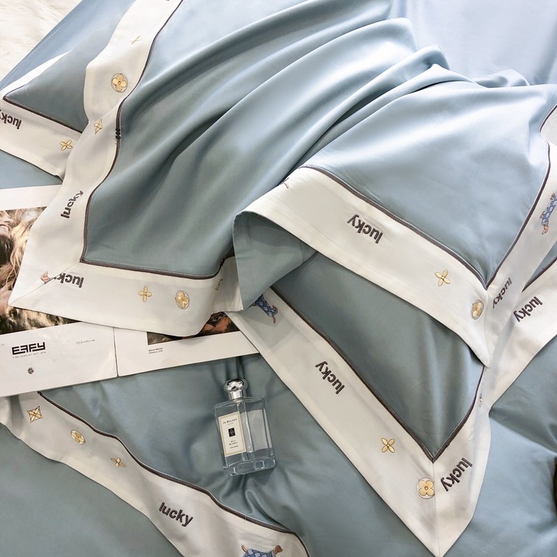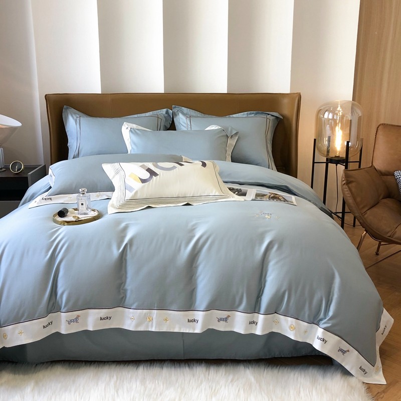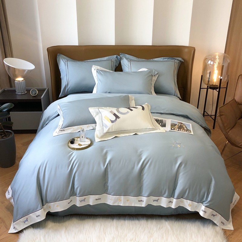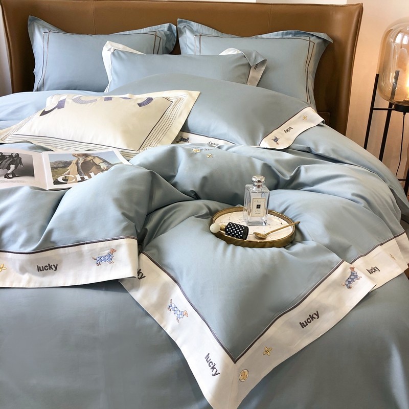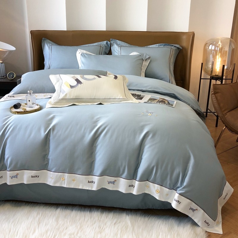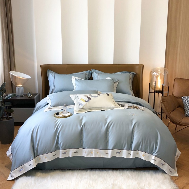优然居家纺 2022新款100支贡缎刺绣四件套-马里奥系列 玛里奥.布鲁蓝