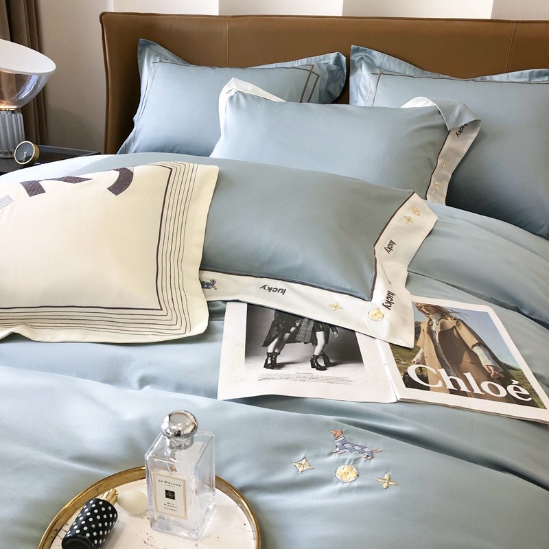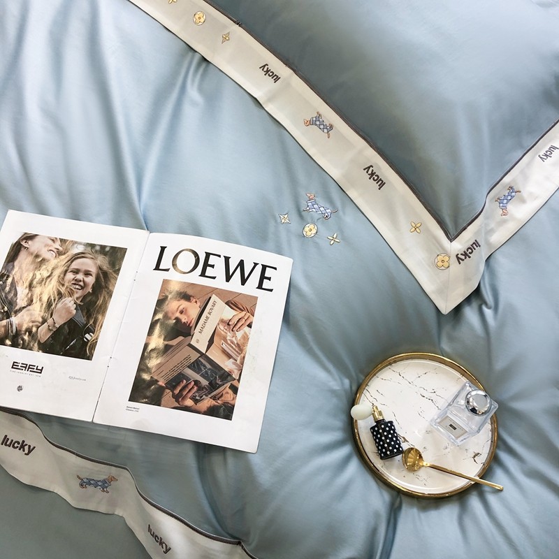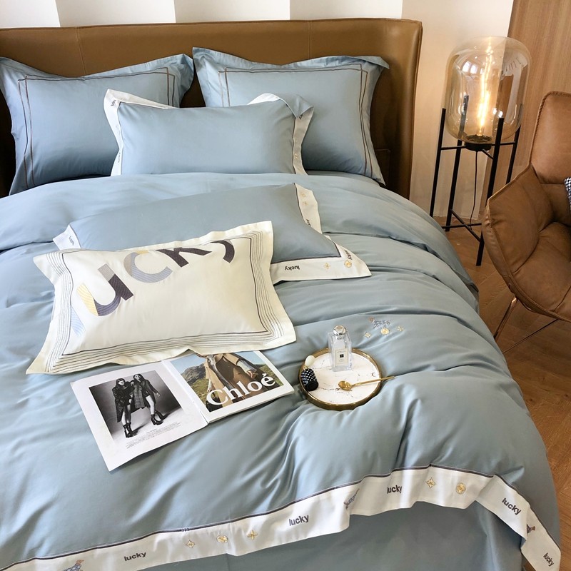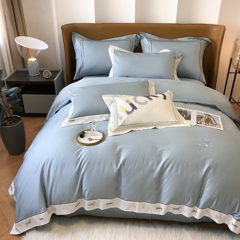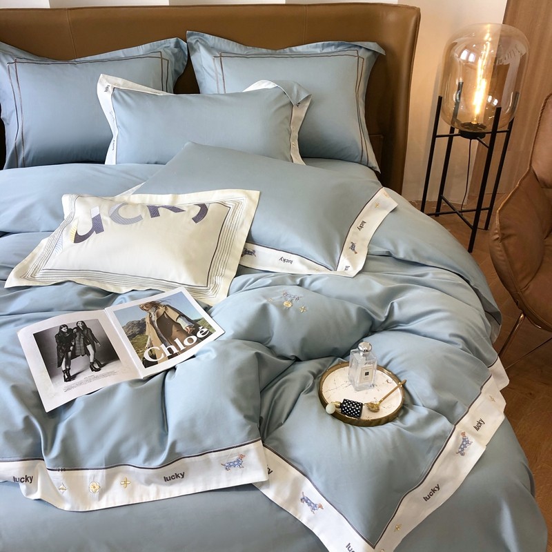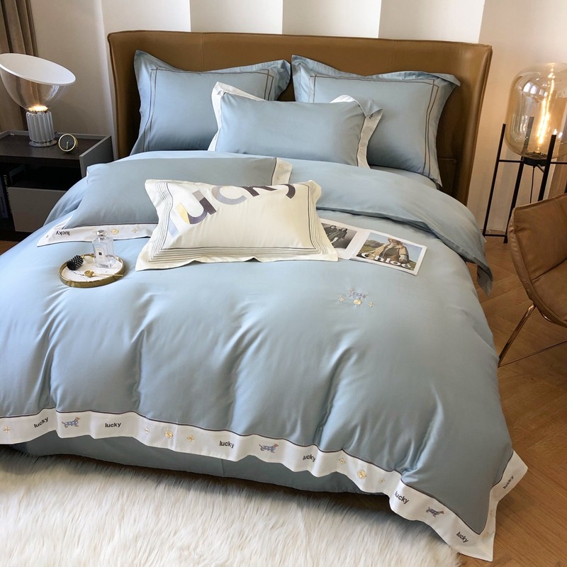 优然居家纺 2022新款100支贡缎刺绣四件套-马里奥系列 玛里奥.布鲁蓝