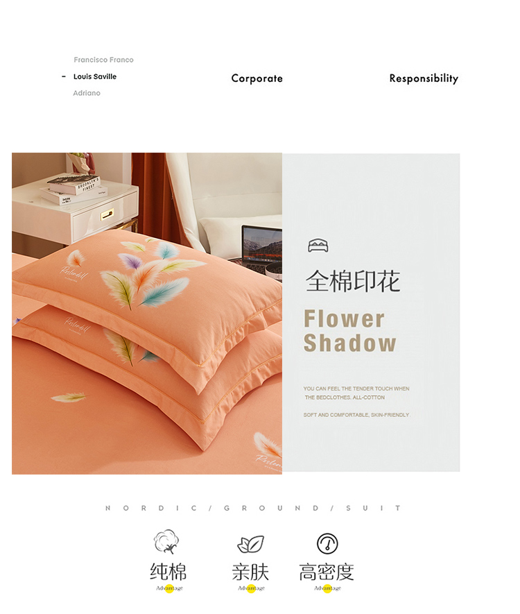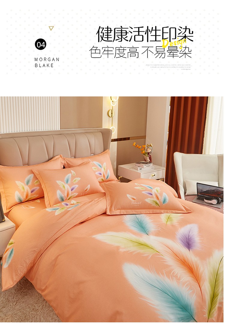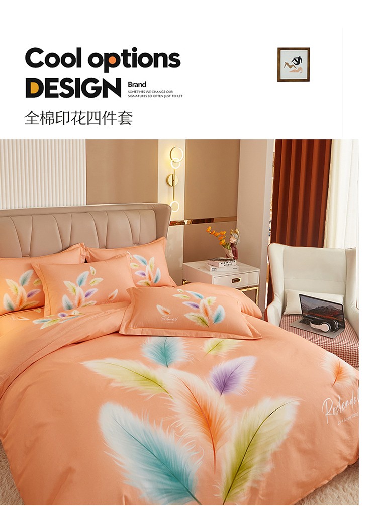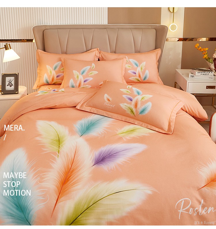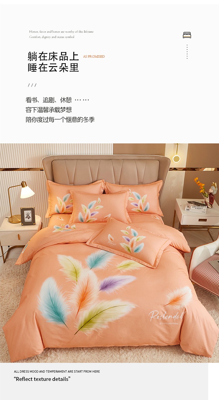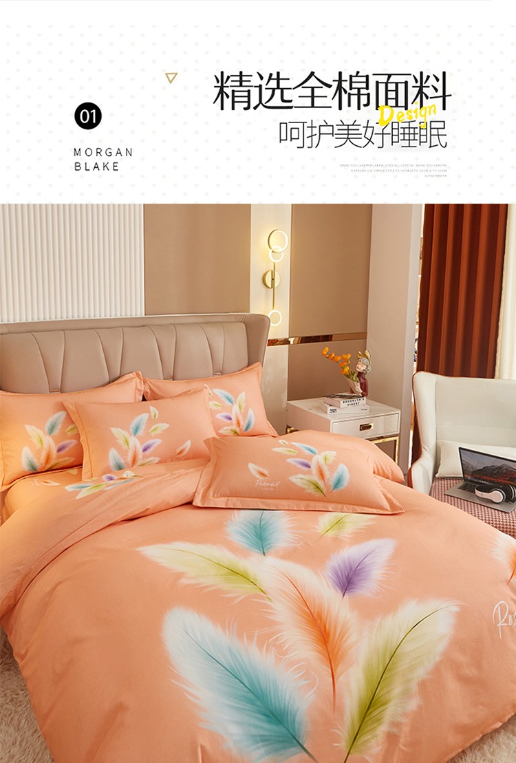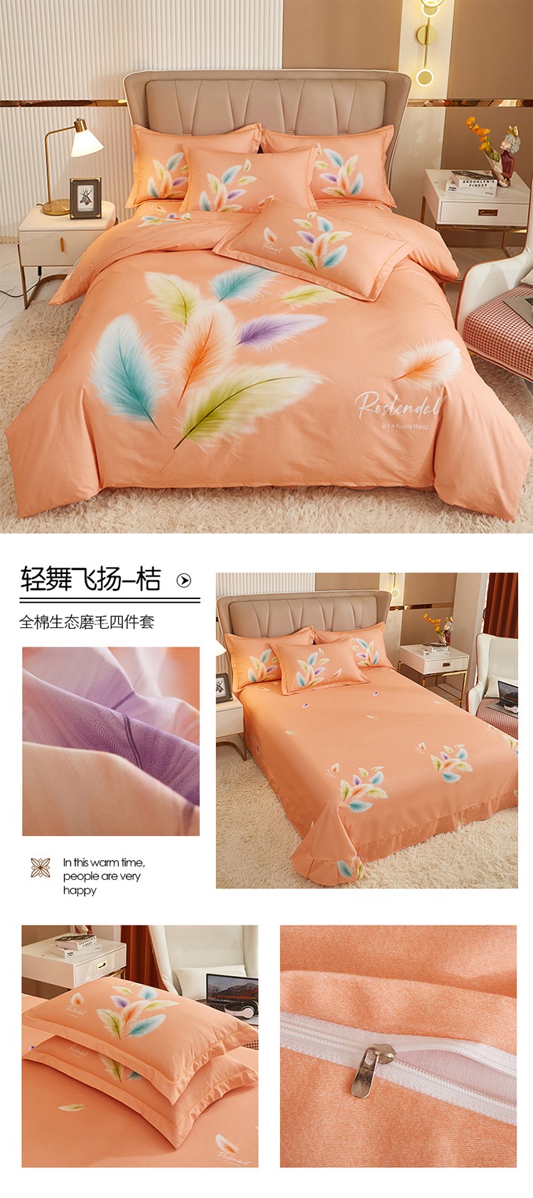 商品名称:雲归梦 2022年新款加厚全棉大版四件套第二批-花卉 轻舞飞扬-桔
