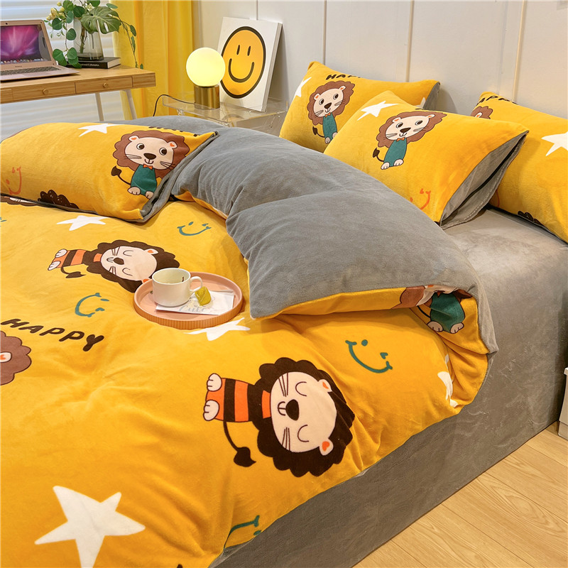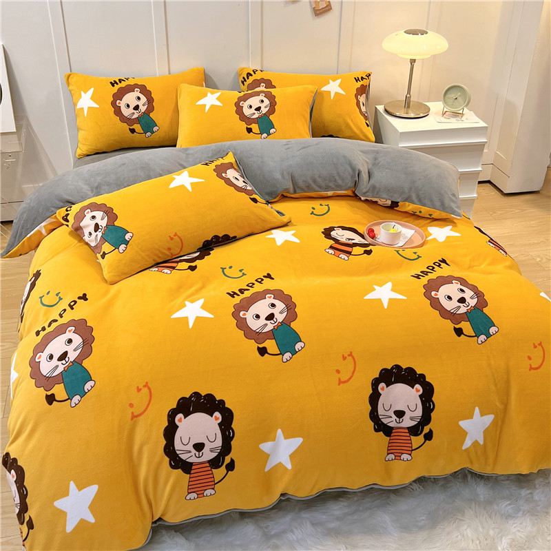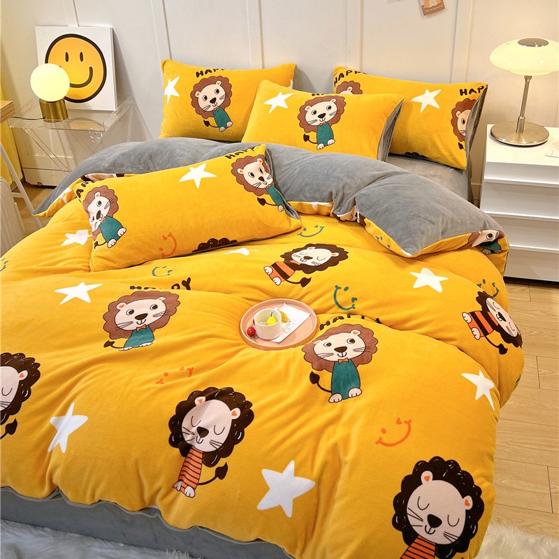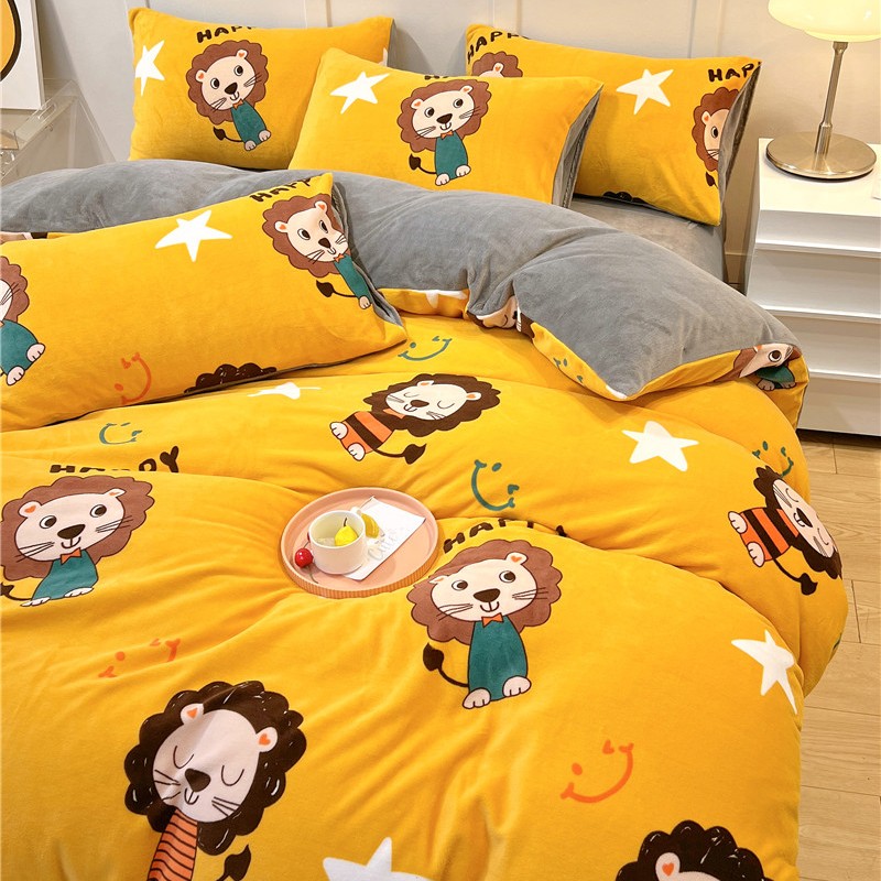 孩子王新款冬季加厚牛奶绒水晶绒珊瑚绒印花系列单被套幸福小狮子