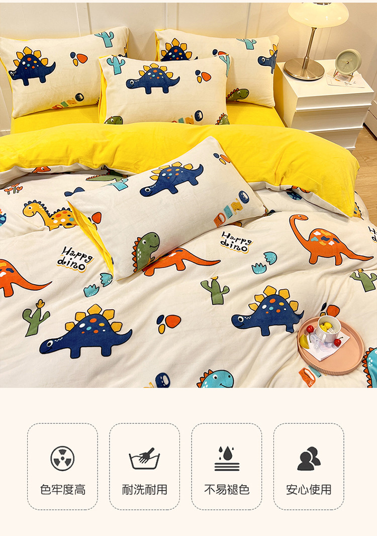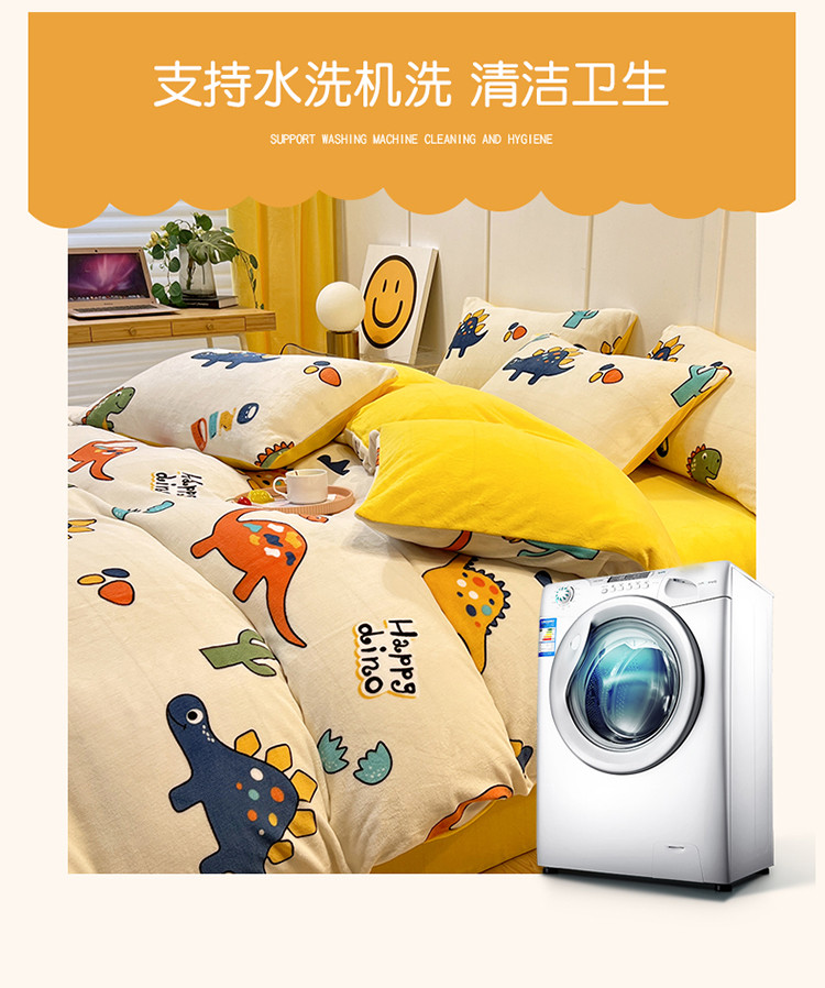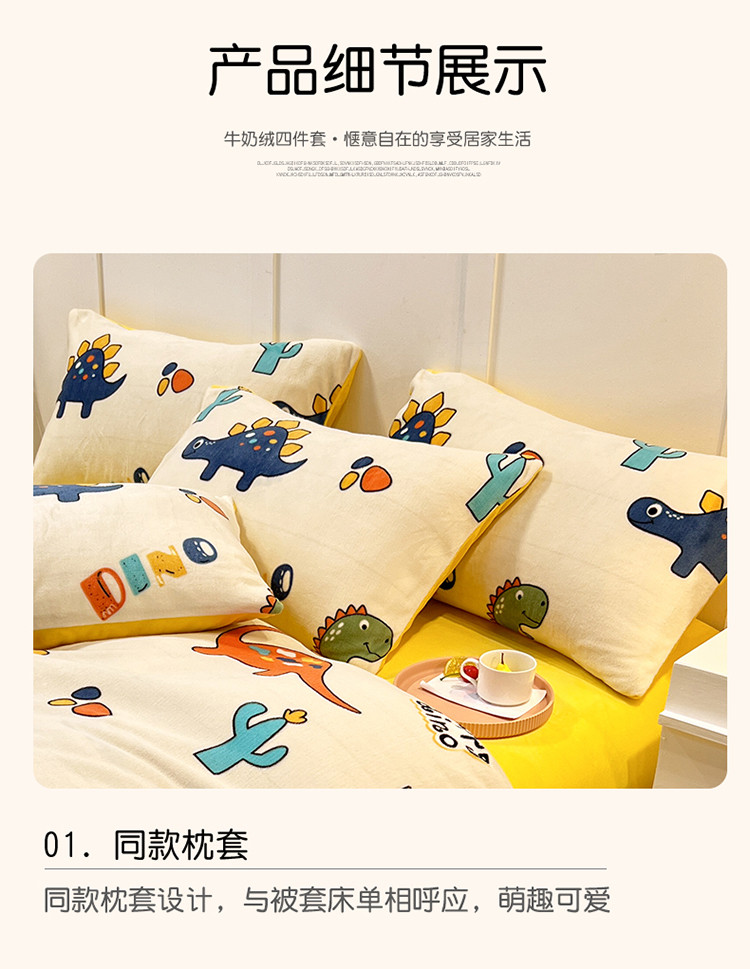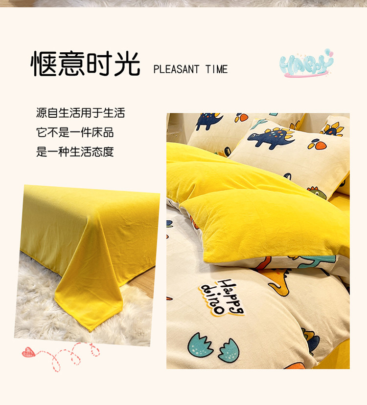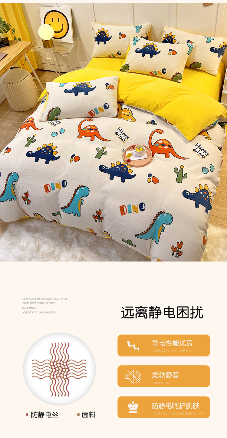 当前位置: 91家纺网 > 商品网购 > 床品套件 > 四件套 > 磨绒四件套 > 孩子王新款冬季加厚牛奶绒水晶绒珊瑚绒印花系列四件套恐龙漫步黄