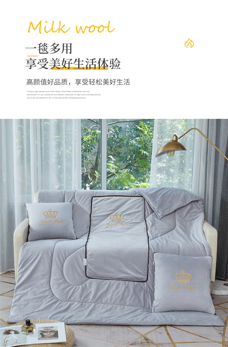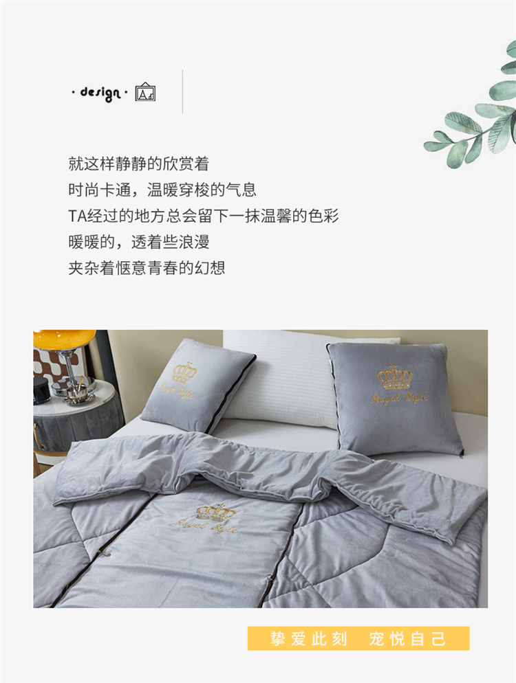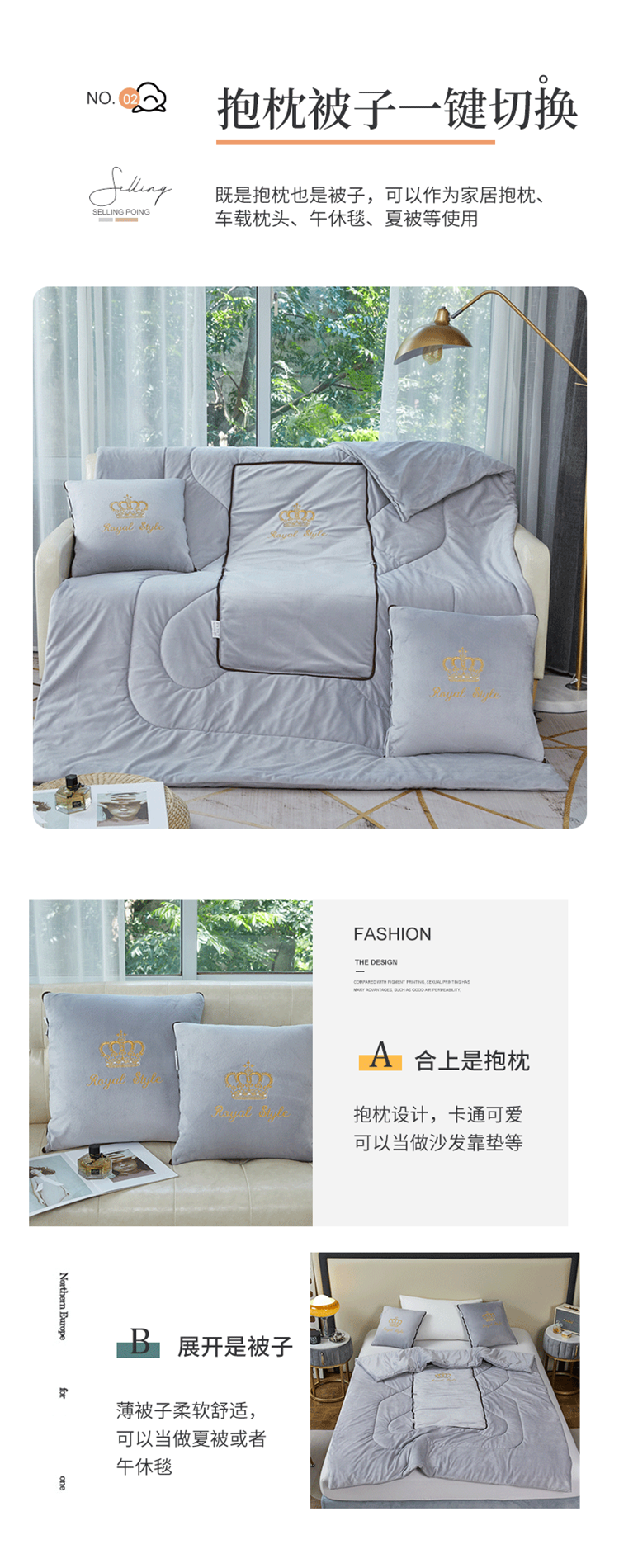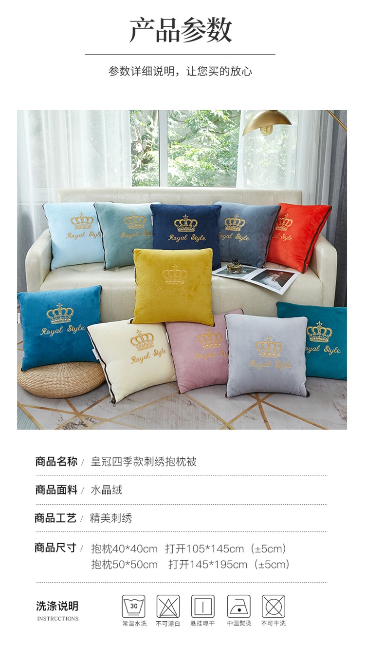 商品名称:翰轩家居2022新款 水晶绒绣花抱枕被系列-皇冠 优雅灰