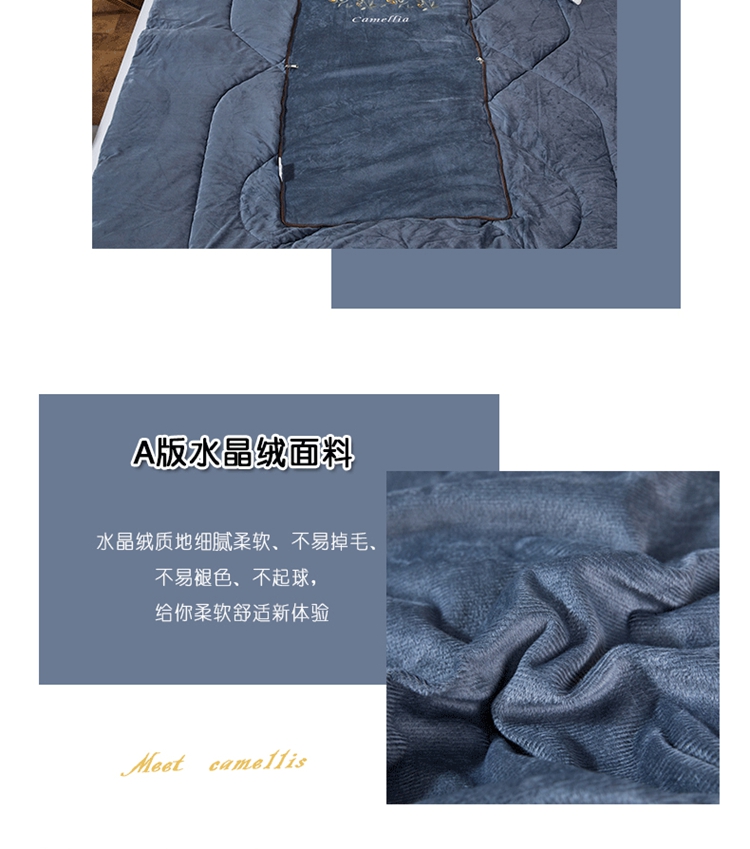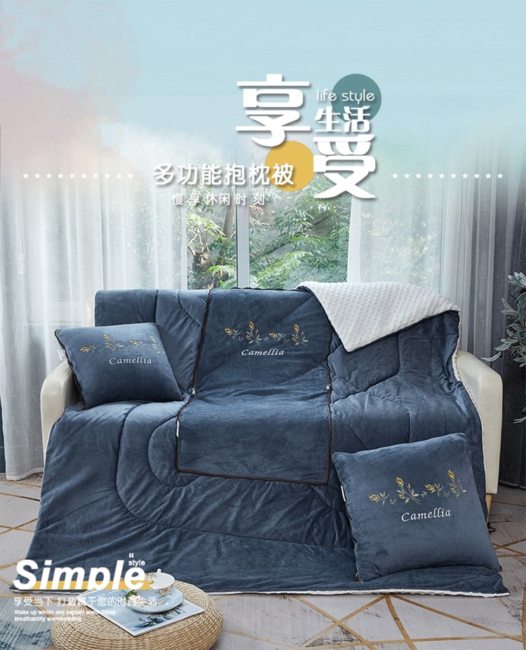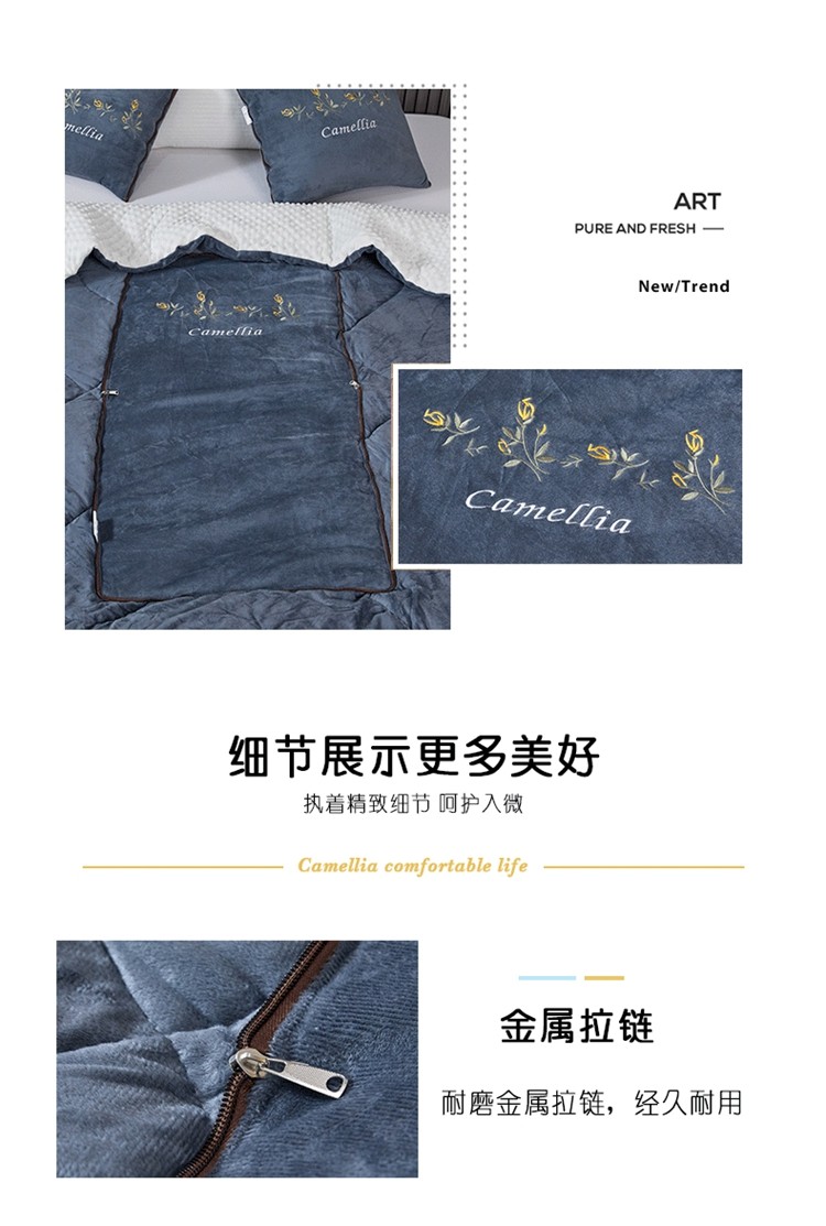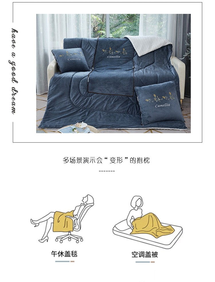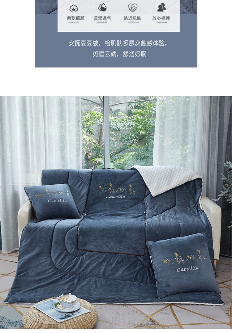 商品名称:翰轩家居 2022新款水晶绒绣花抱枕被系列-山茶花开 高级灰
