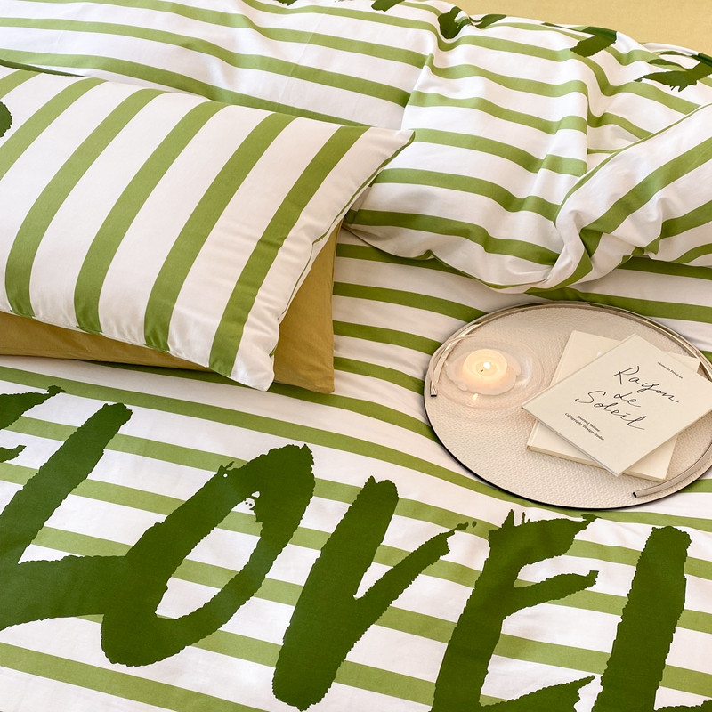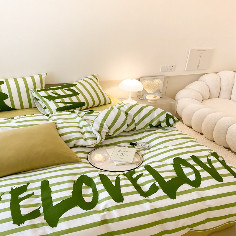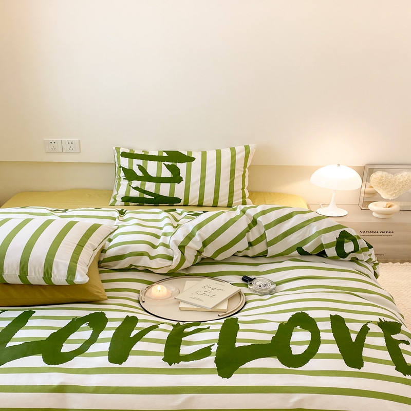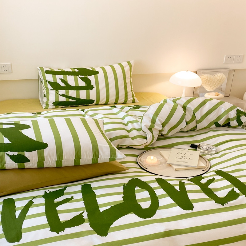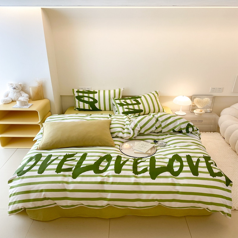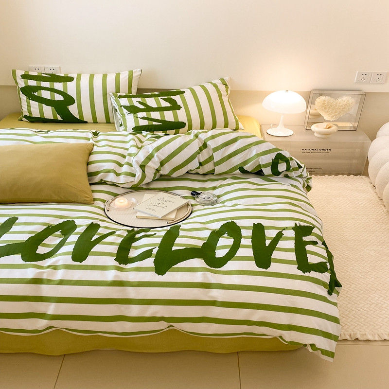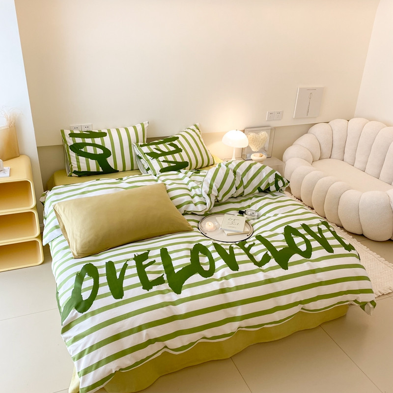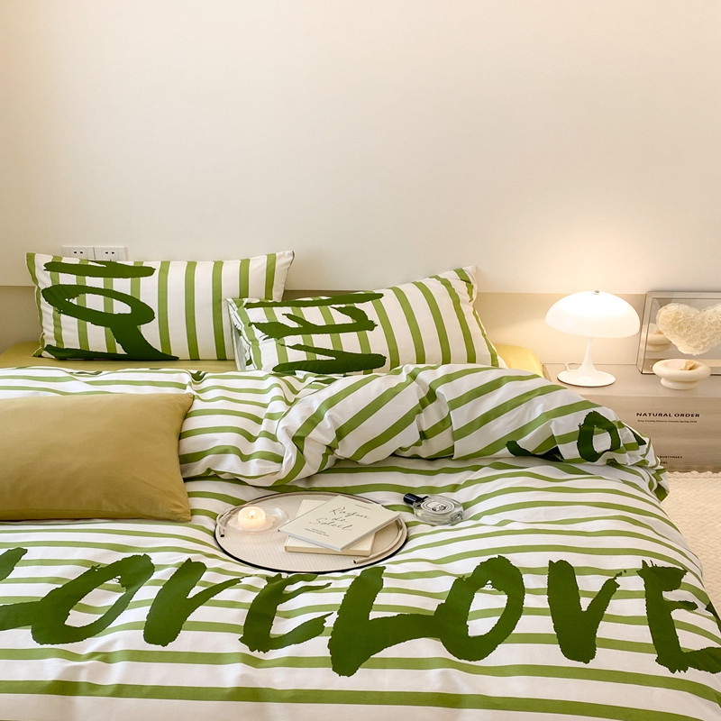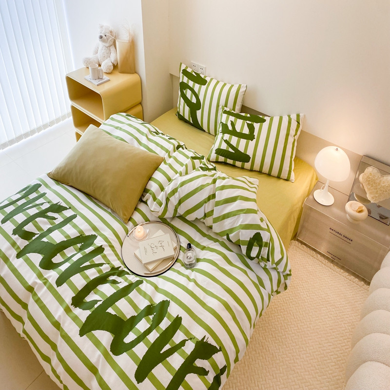 昔可 2022新款全棉四件套影棚图2 字母条纹