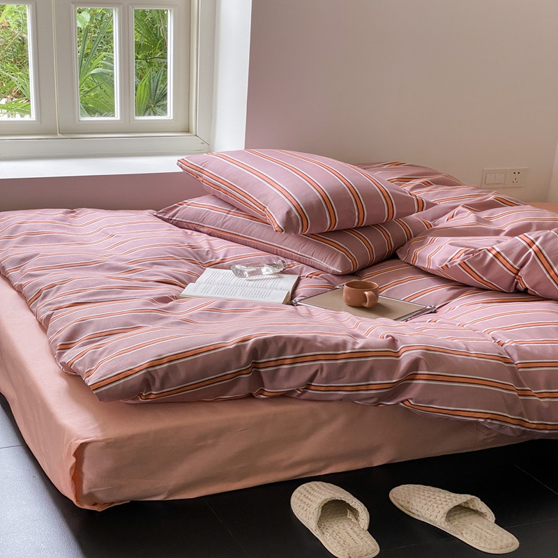 昔可 2022新款全棉四件套影棚图1 棕粉条