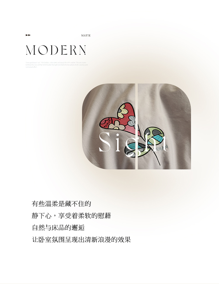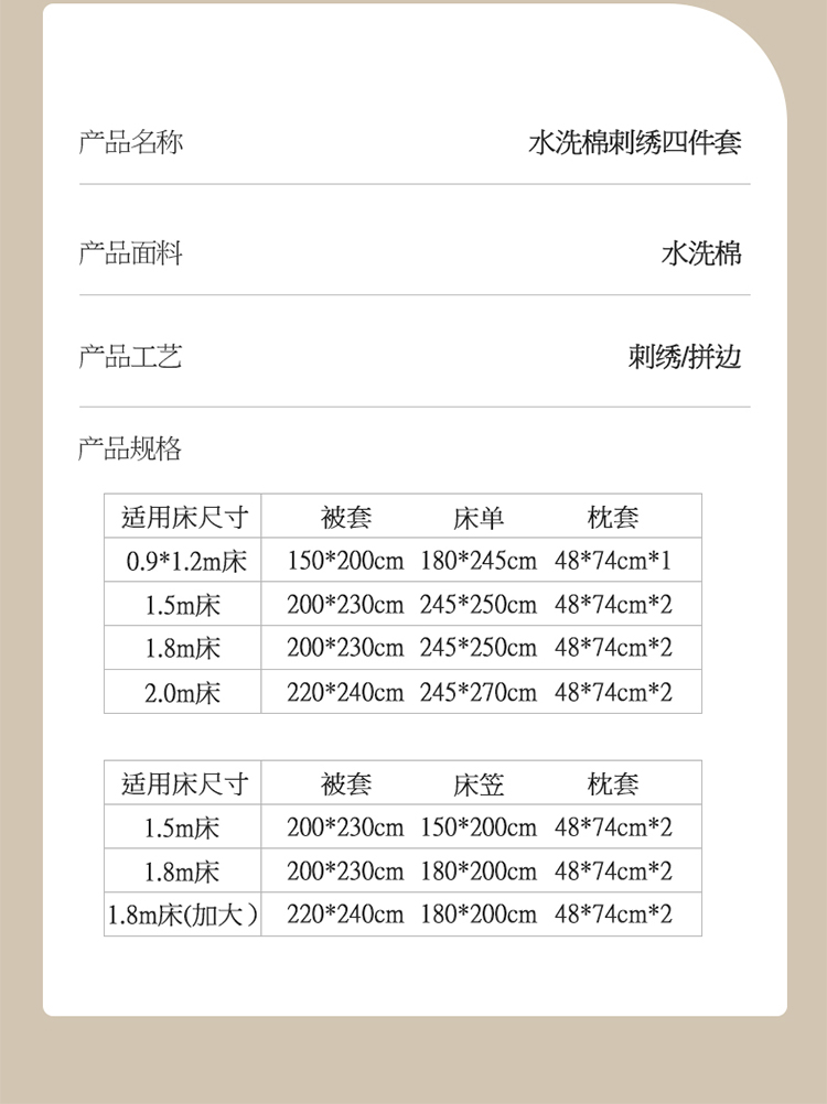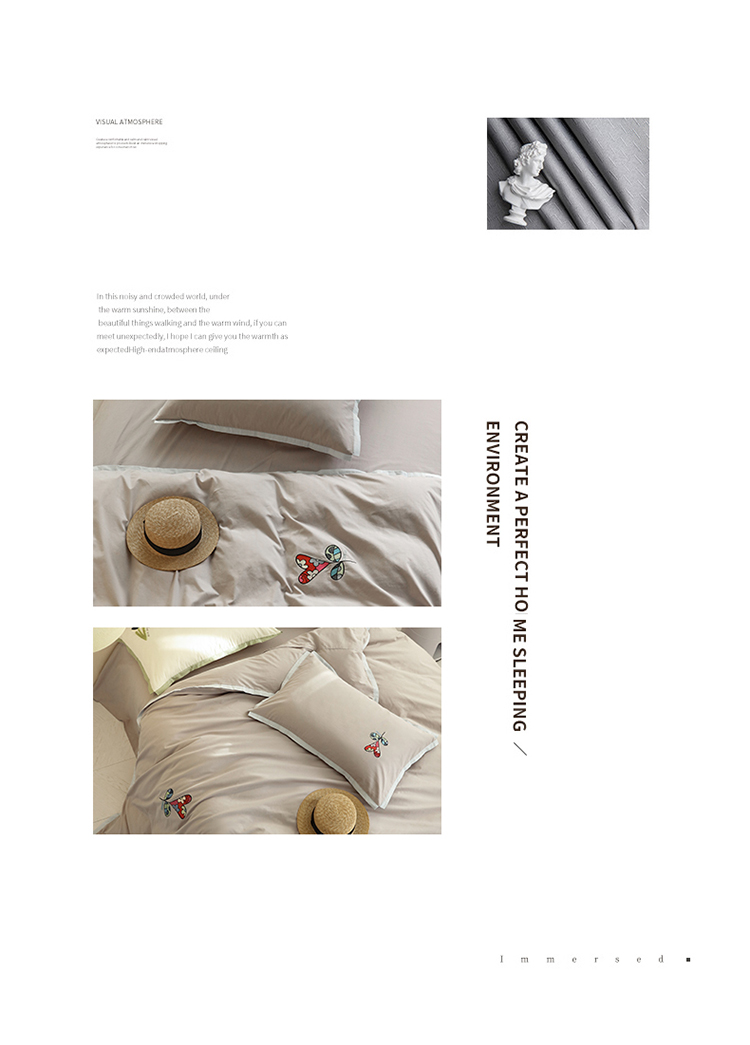 商品名称:名品优仓 2023新款水洗棉刺绣四件套-欢惜花 欢惜花-搁浅灰