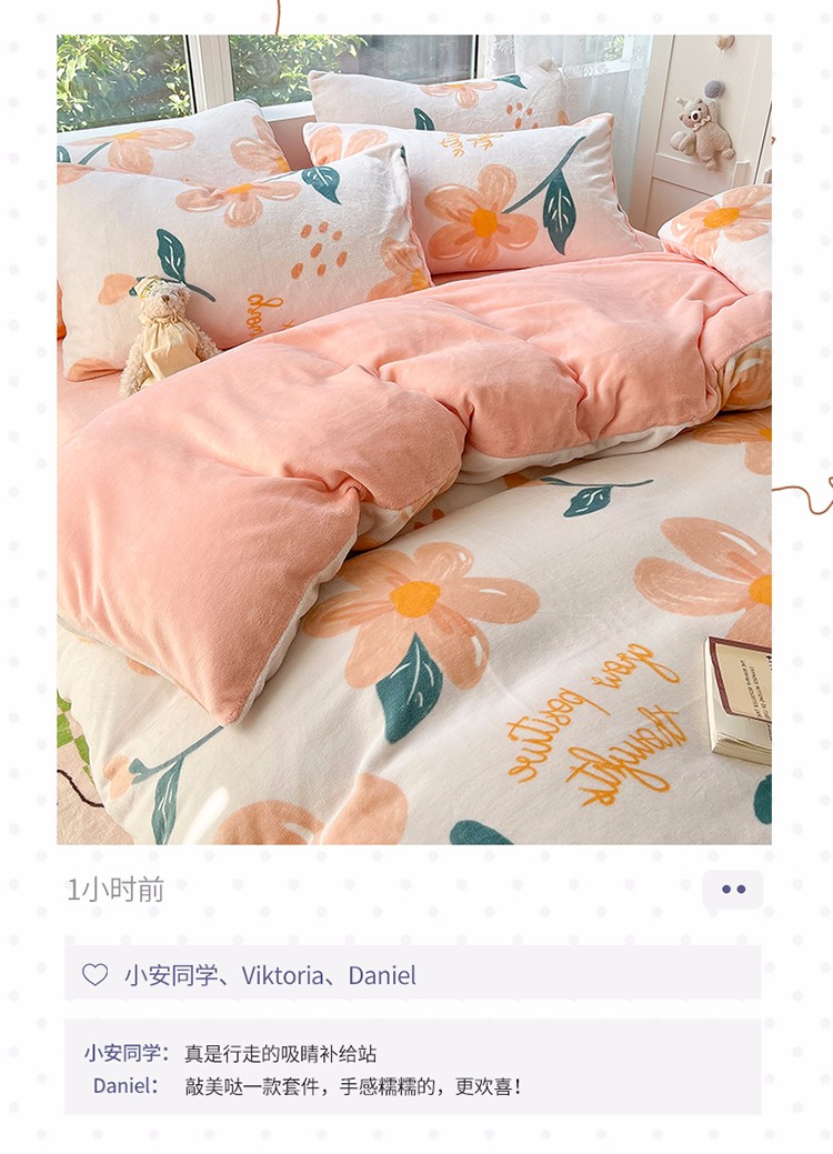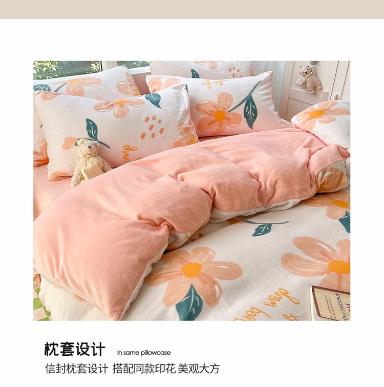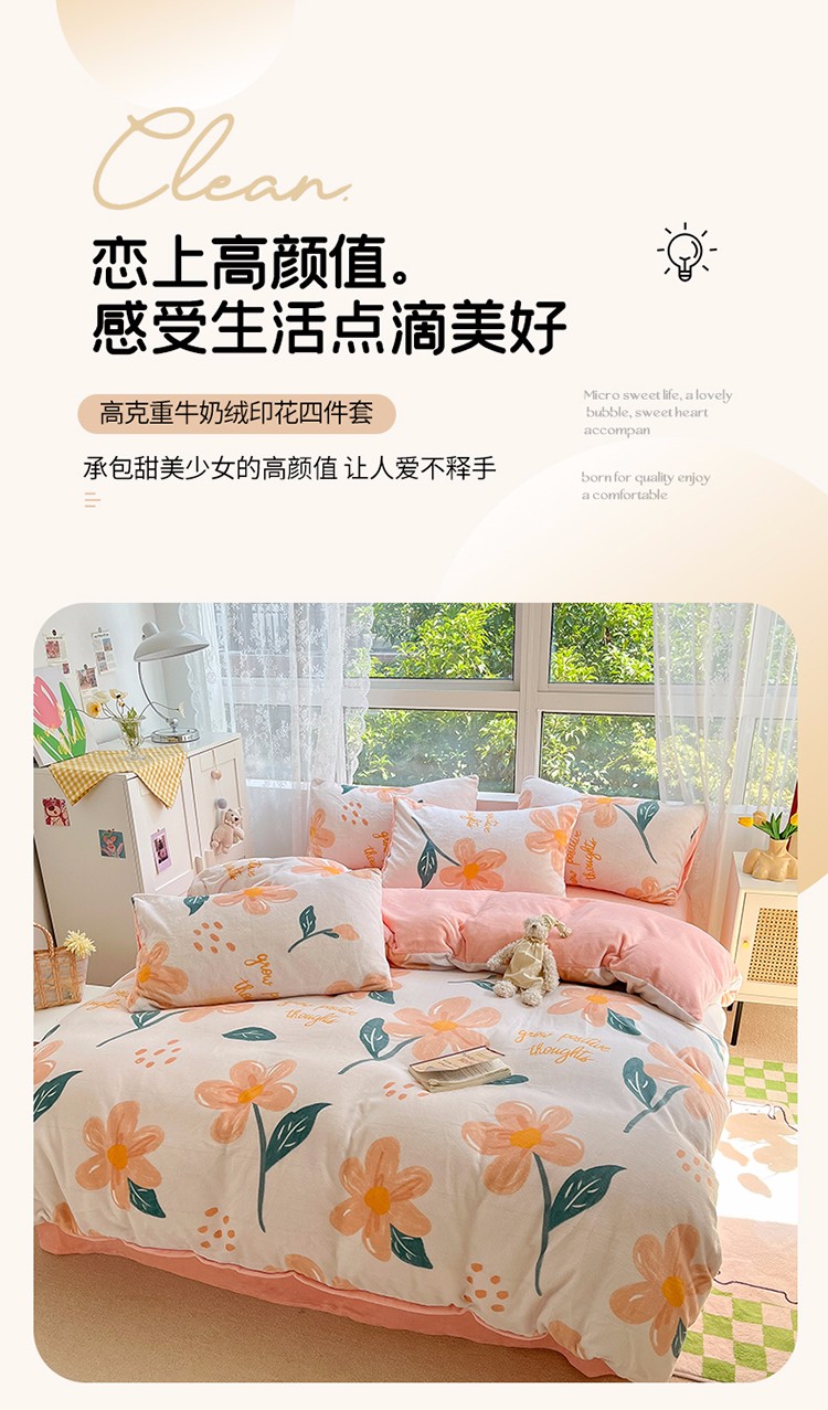 商品名称:雅居纺 2022新款牛奶绒印花四件套 浪漫花香