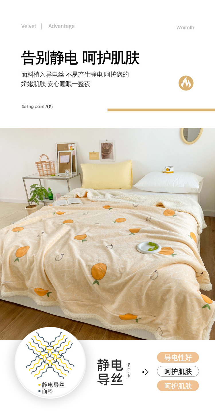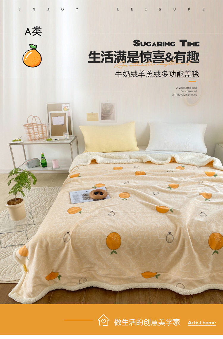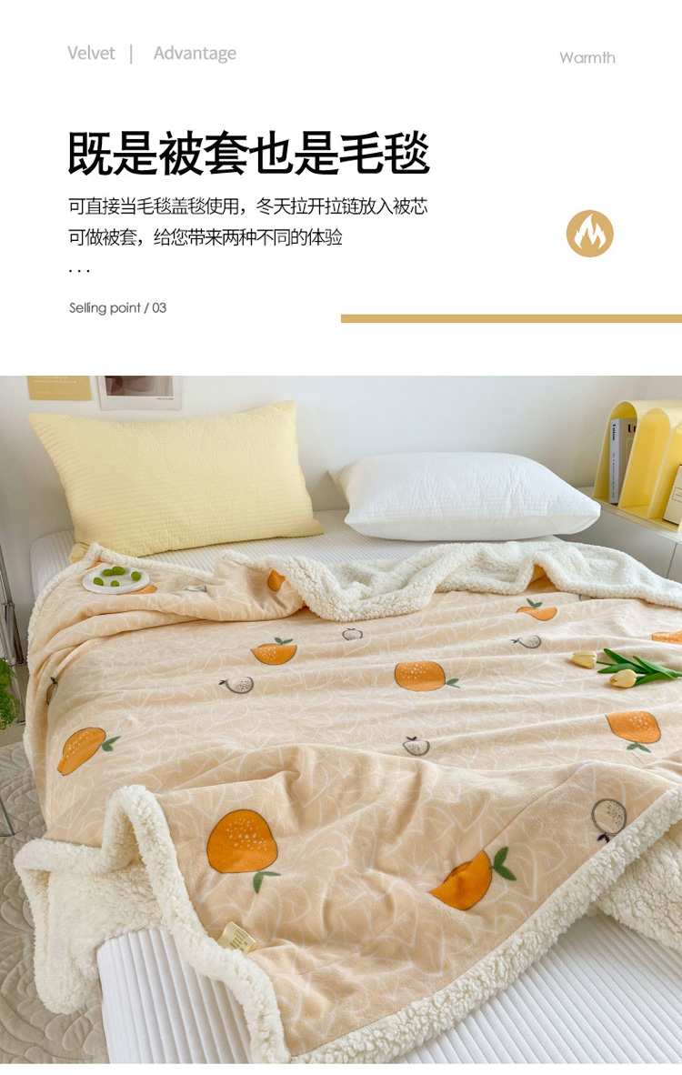 商品名称:寐居 2022新款牛奶绒羊羔绒被套两用多功能盖毯 蜜橘