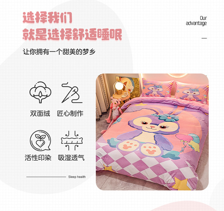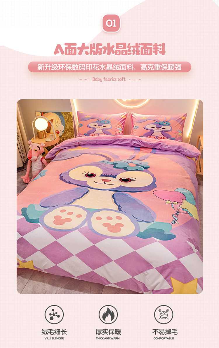 当前位置: 91家纺网 > 商品网购 > 床品套件 > 四件套 > 牛奶绒四件套 > ds生活馆2025新款大版卡通水晶牛奶珊瑚绒单被套三四件套 星黛露紫