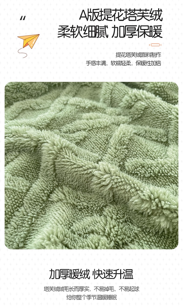 当前位置: 91家纺网 > 商品网购 > 毛毯休闲毯绒毯 > 毛毯 > 新月家纺 2022新款塔芙绒多功能被套毯 茶绿