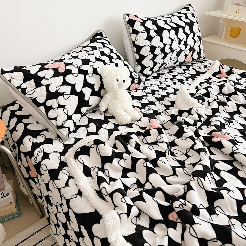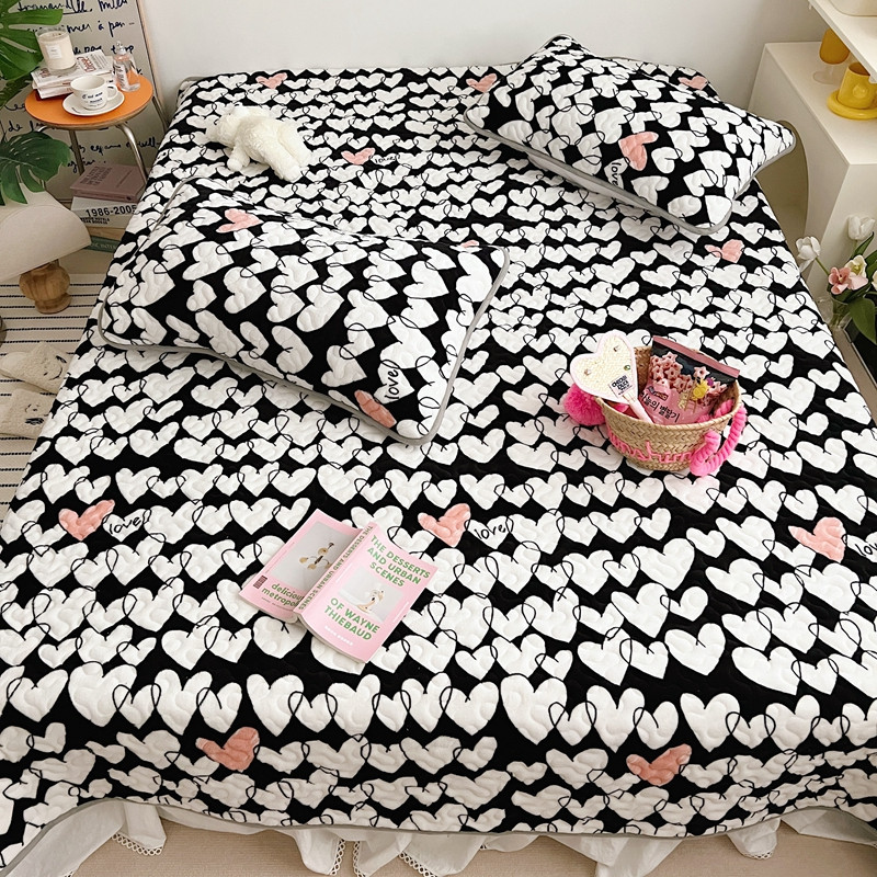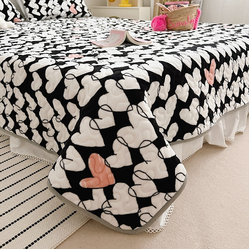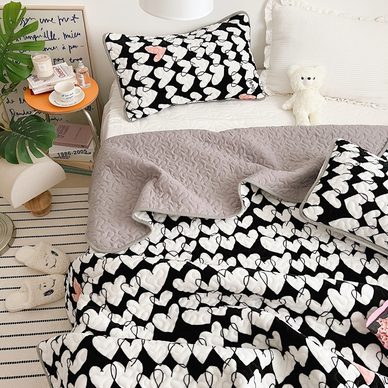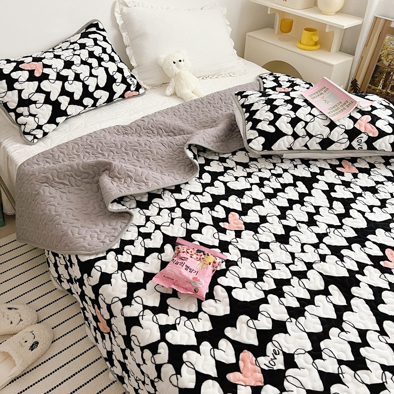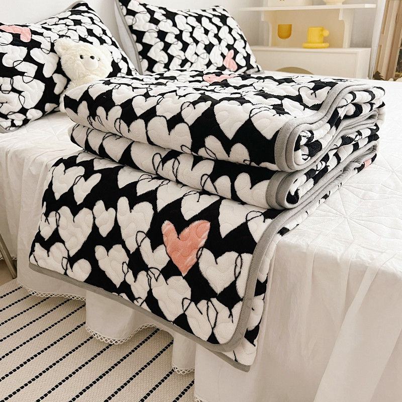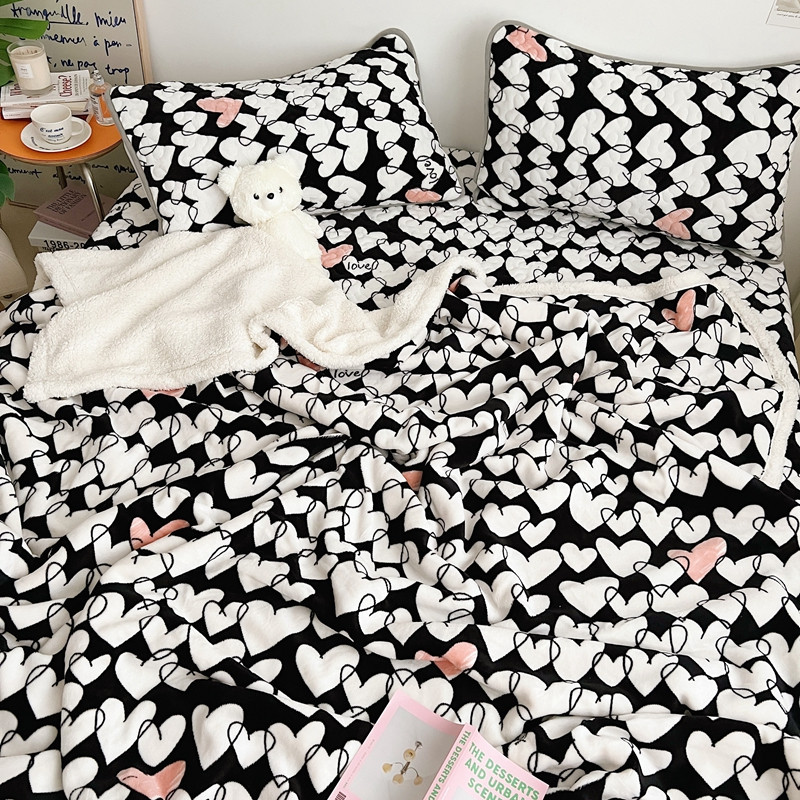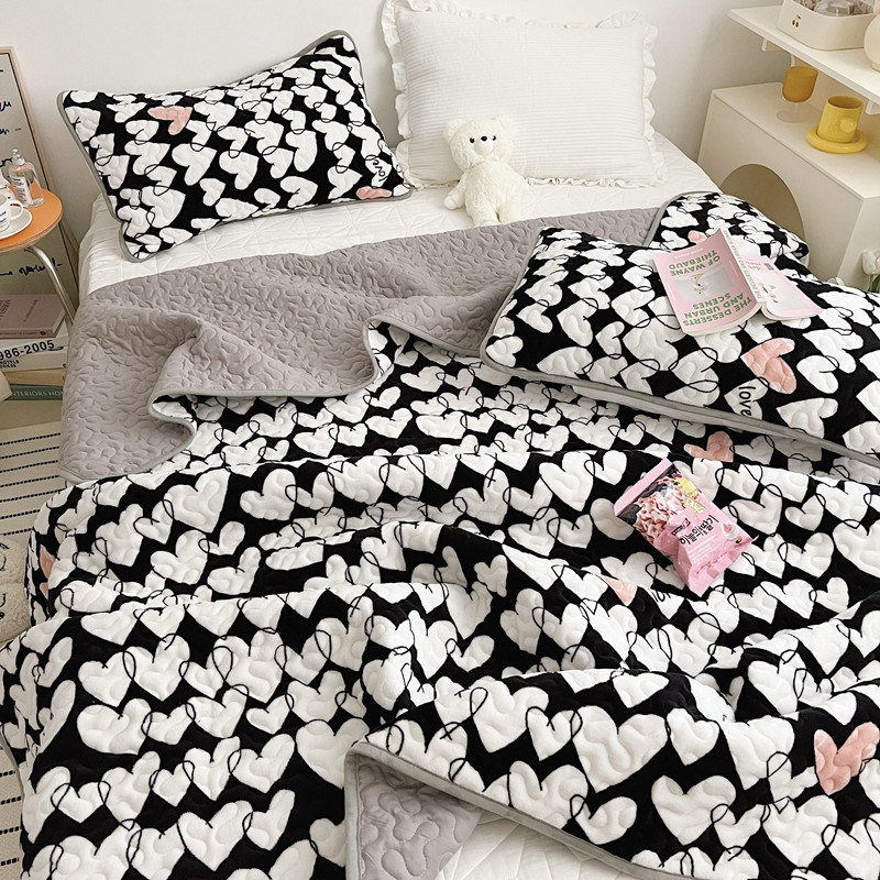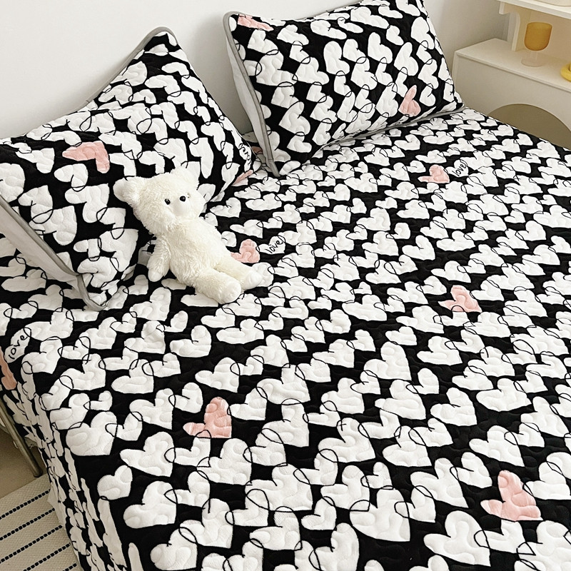 美乐迪 2022新款多功能牛奶绒亲肤棉床盖套件 黑色爱心