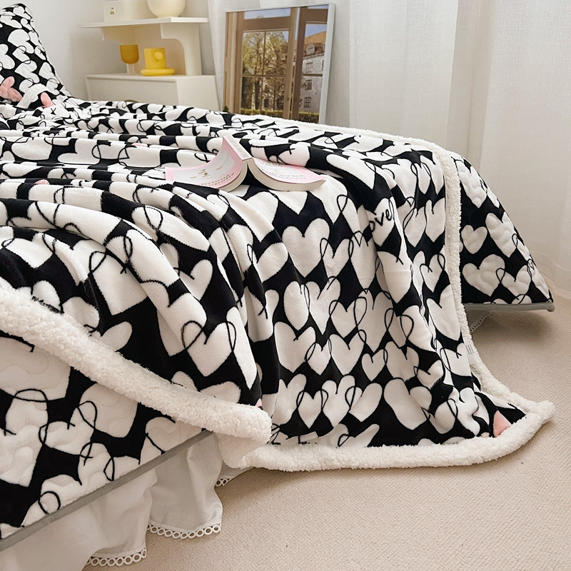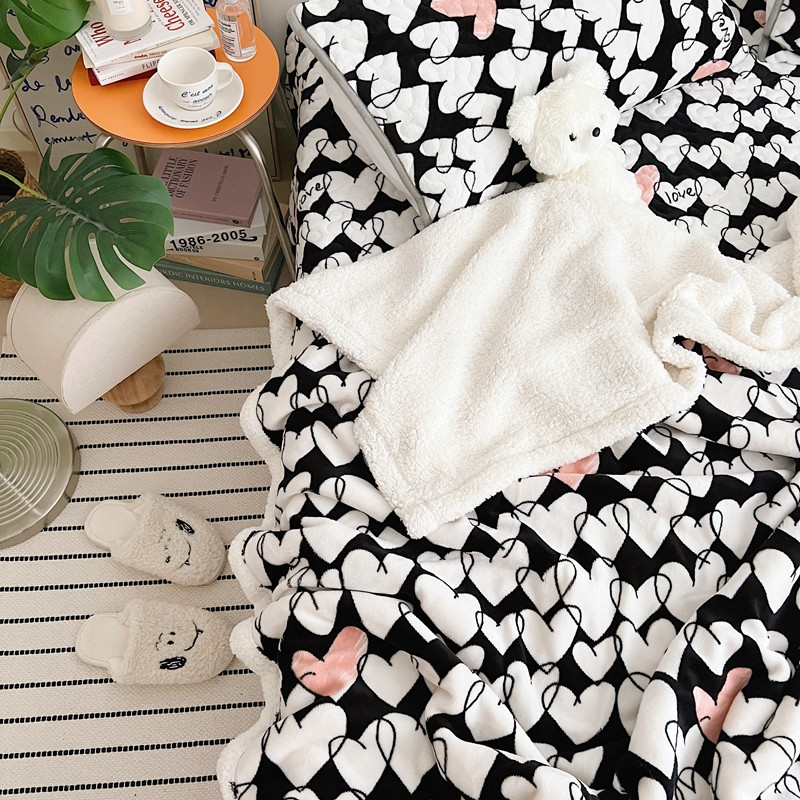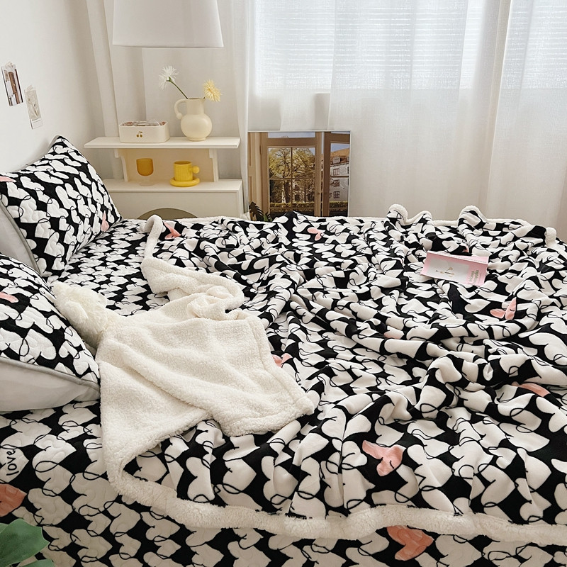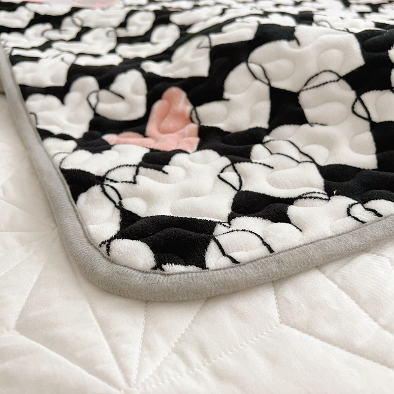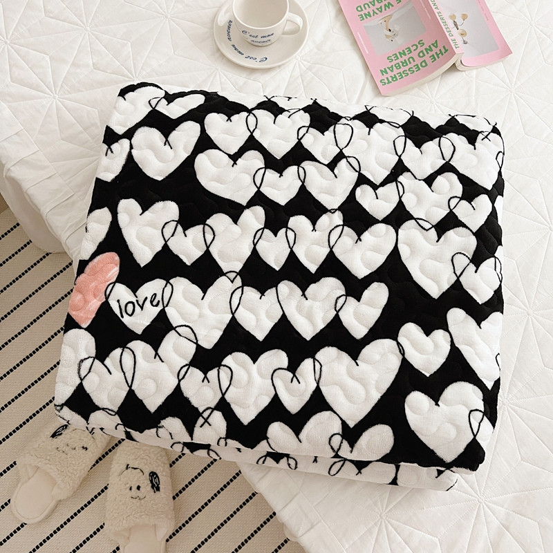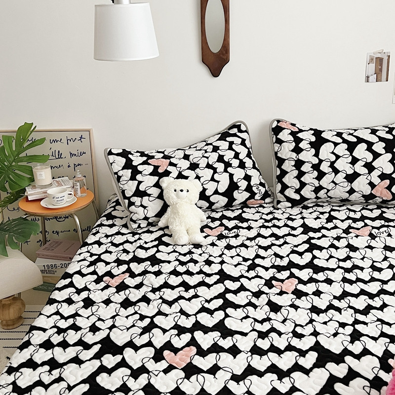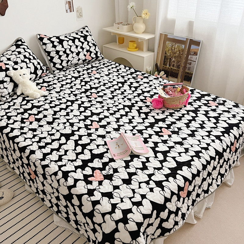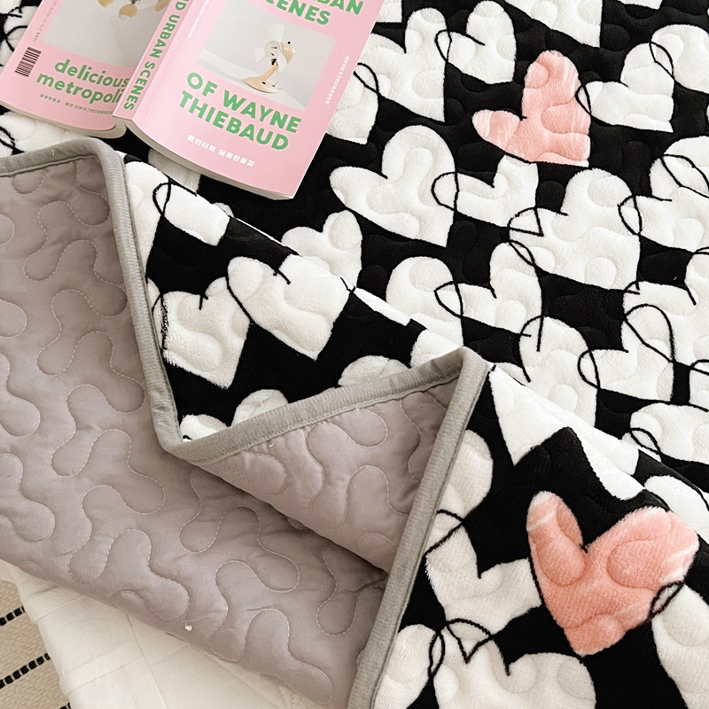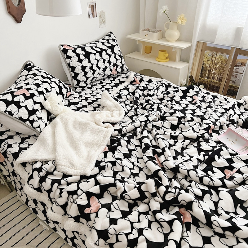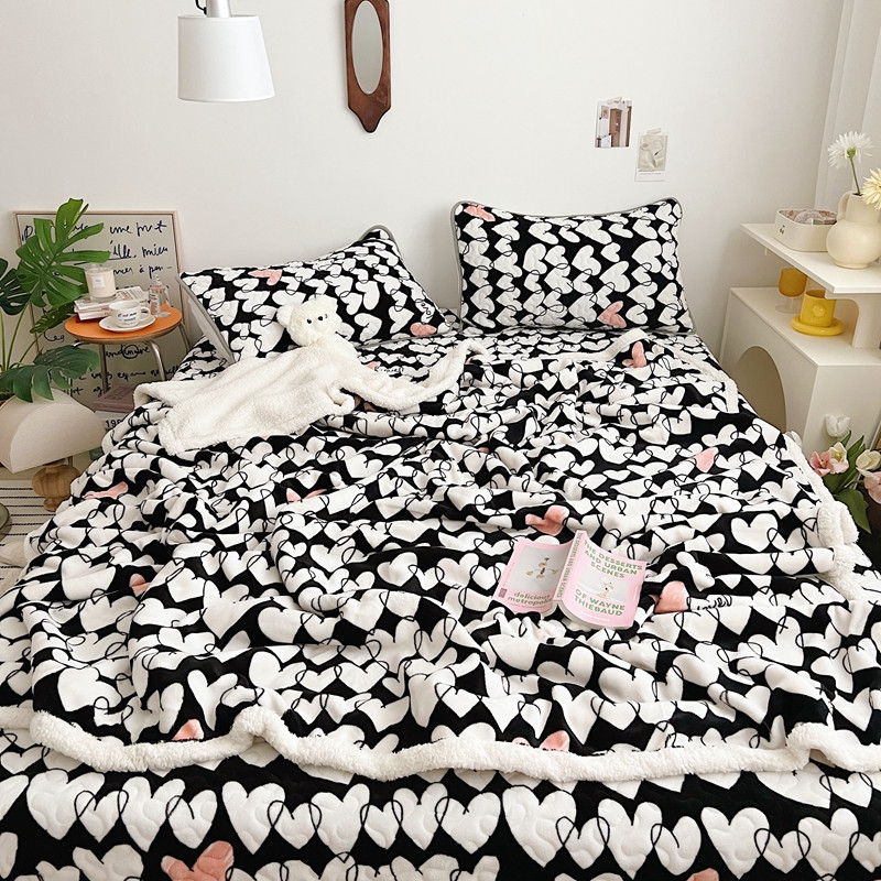 美乐迪 2022新款多功能牛奶绒亲肤棉床盖套件 黑色爱心
