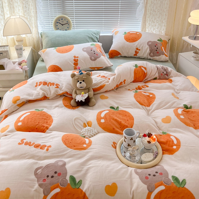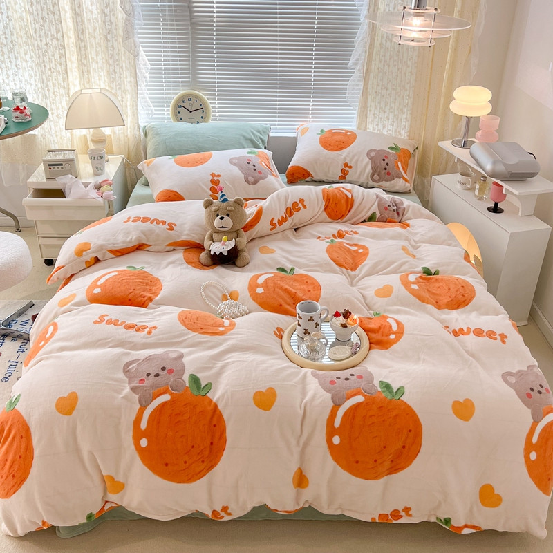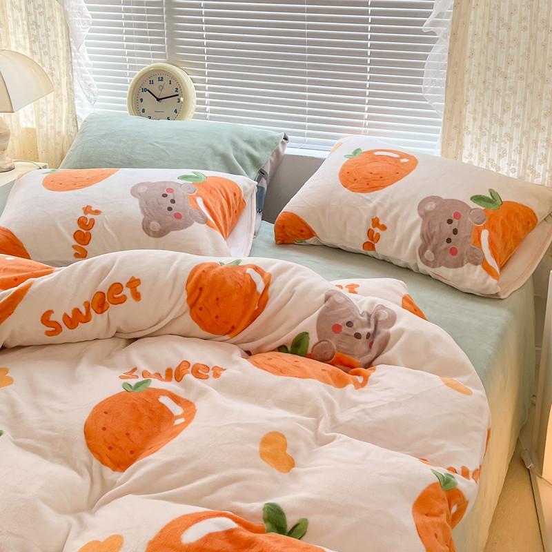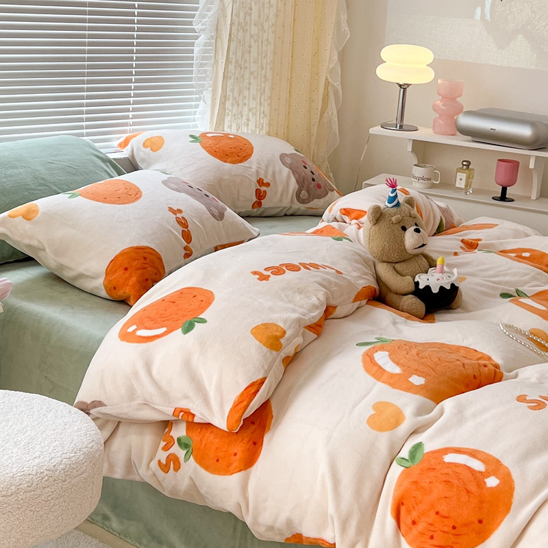 商品名称:昔可 2022新款牛奶绒卡通系列四件套 奶油橘
