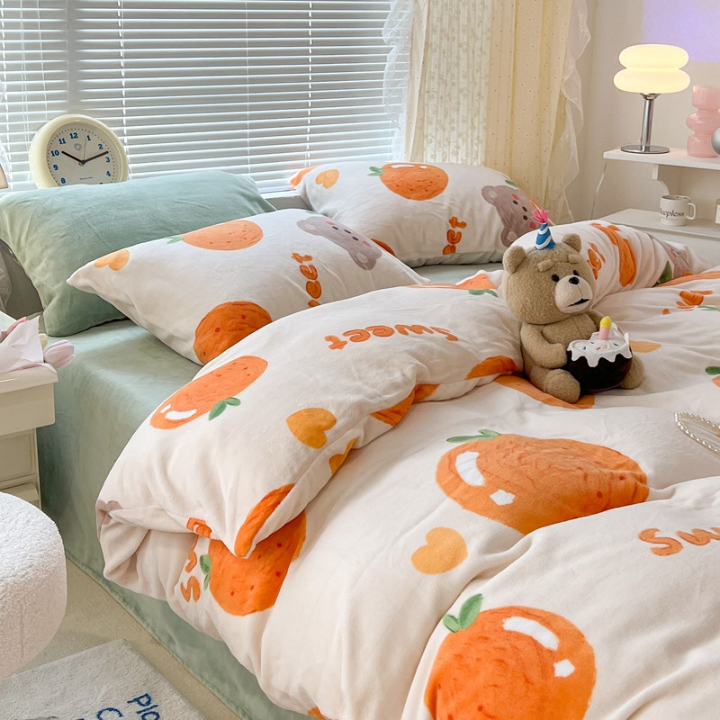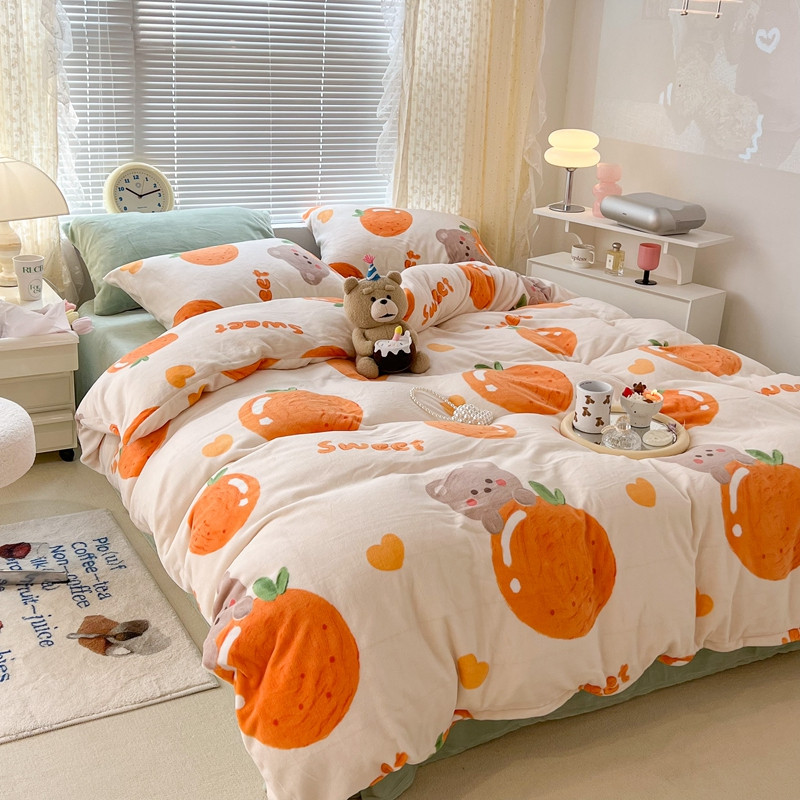 昔可 2022新款牛奶绒卡通系列四件套 奶油橘