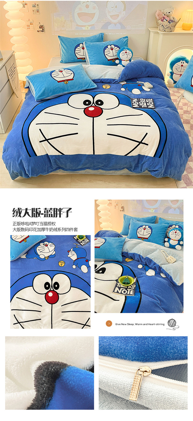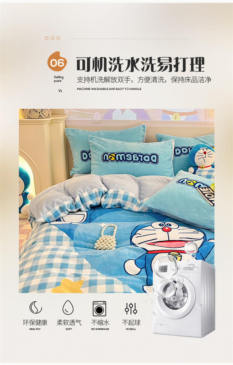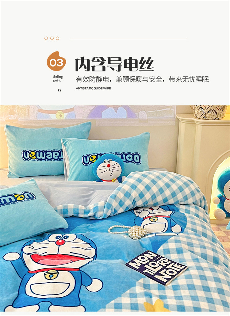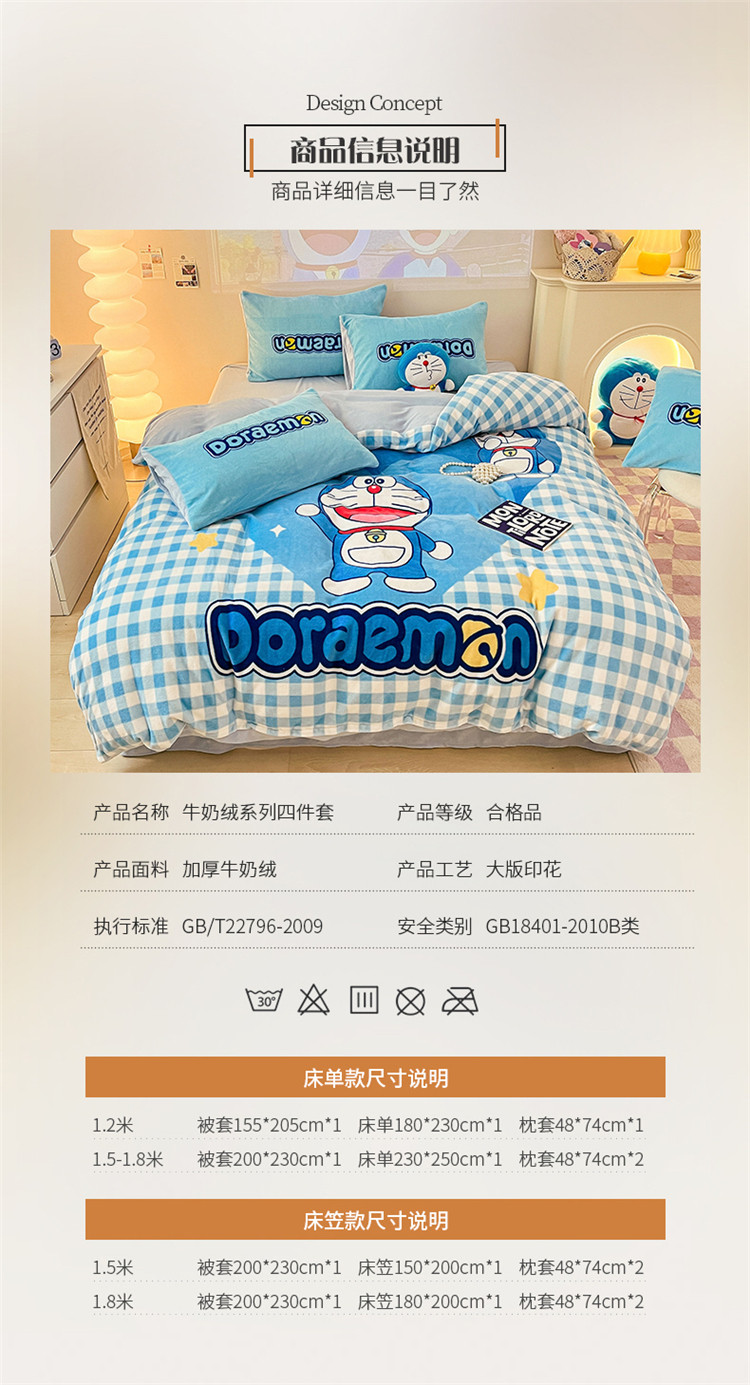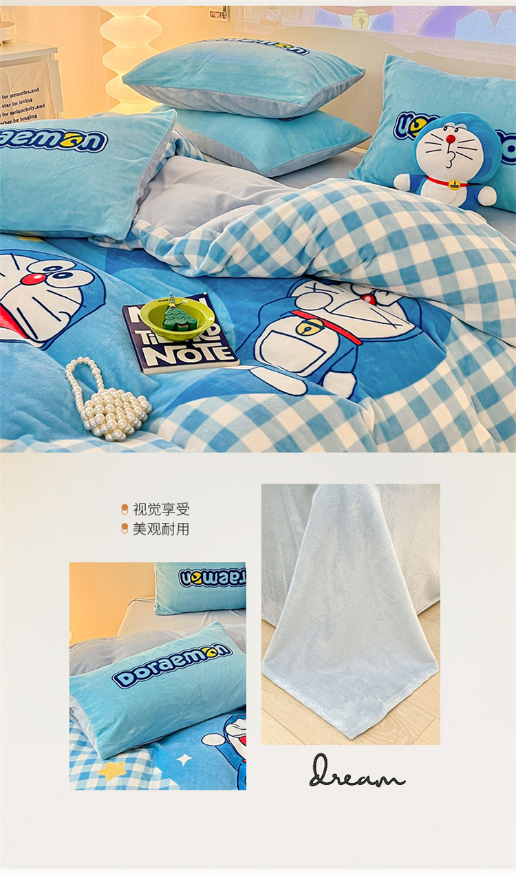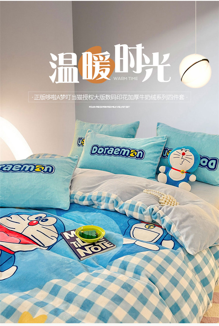 商品名称:总正版哆啦A梦叮当猫授权大版数码印花加厚牛奶绒系列四件套