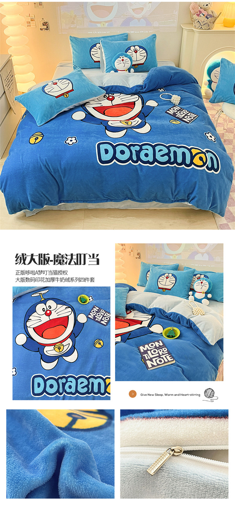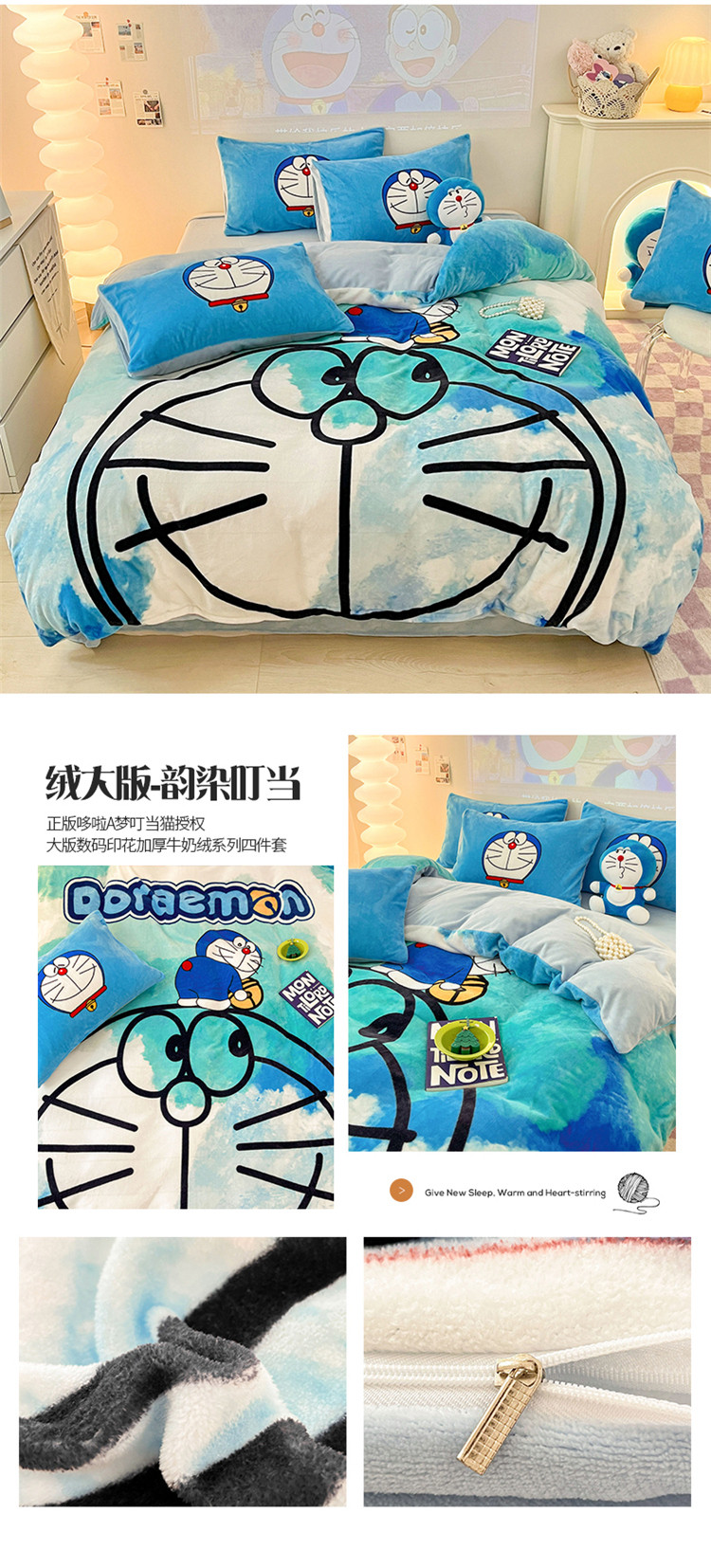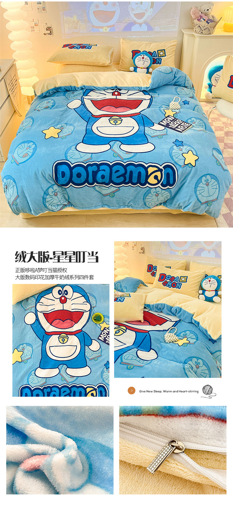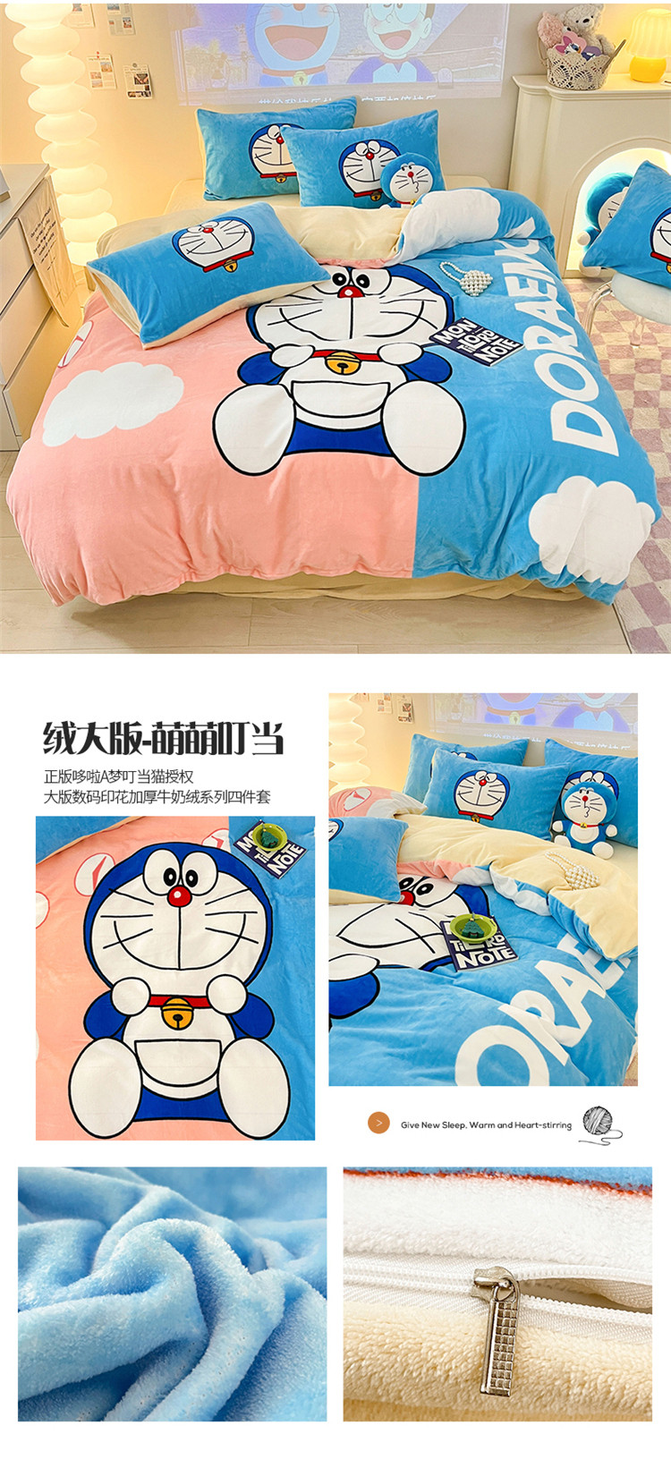商品名称:总正版哆啦A梦叮当猫授权大版数码印花加厚牛奶绒系列四件套