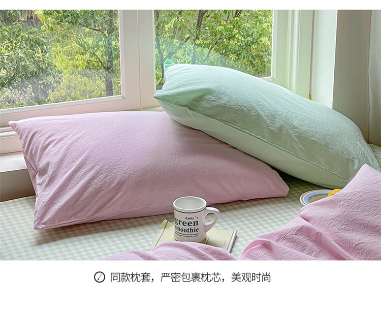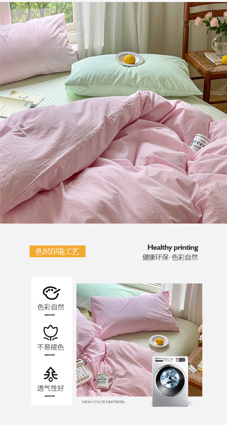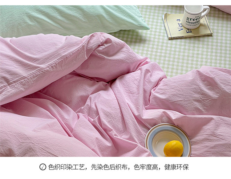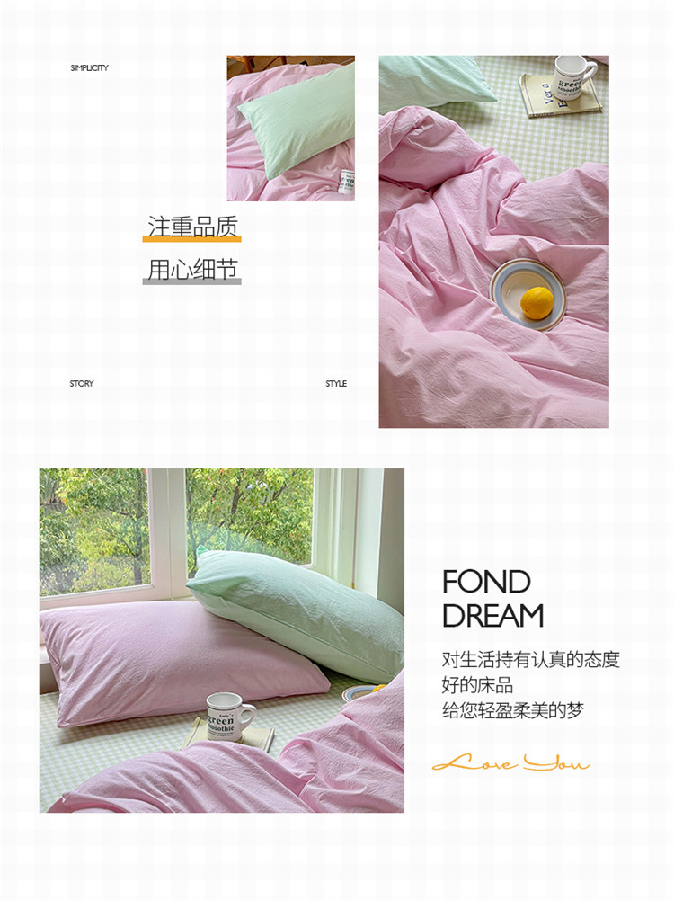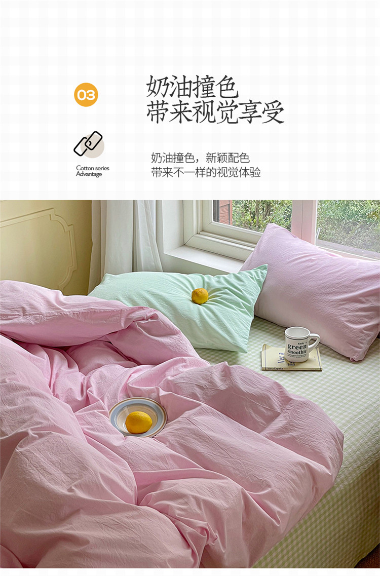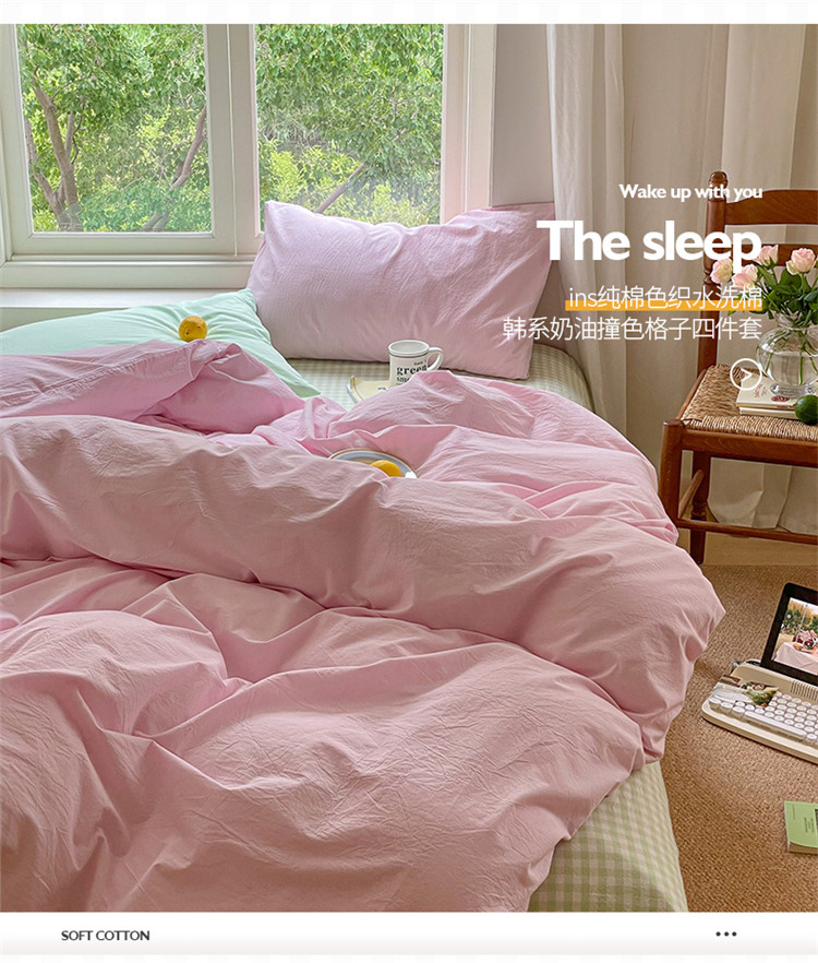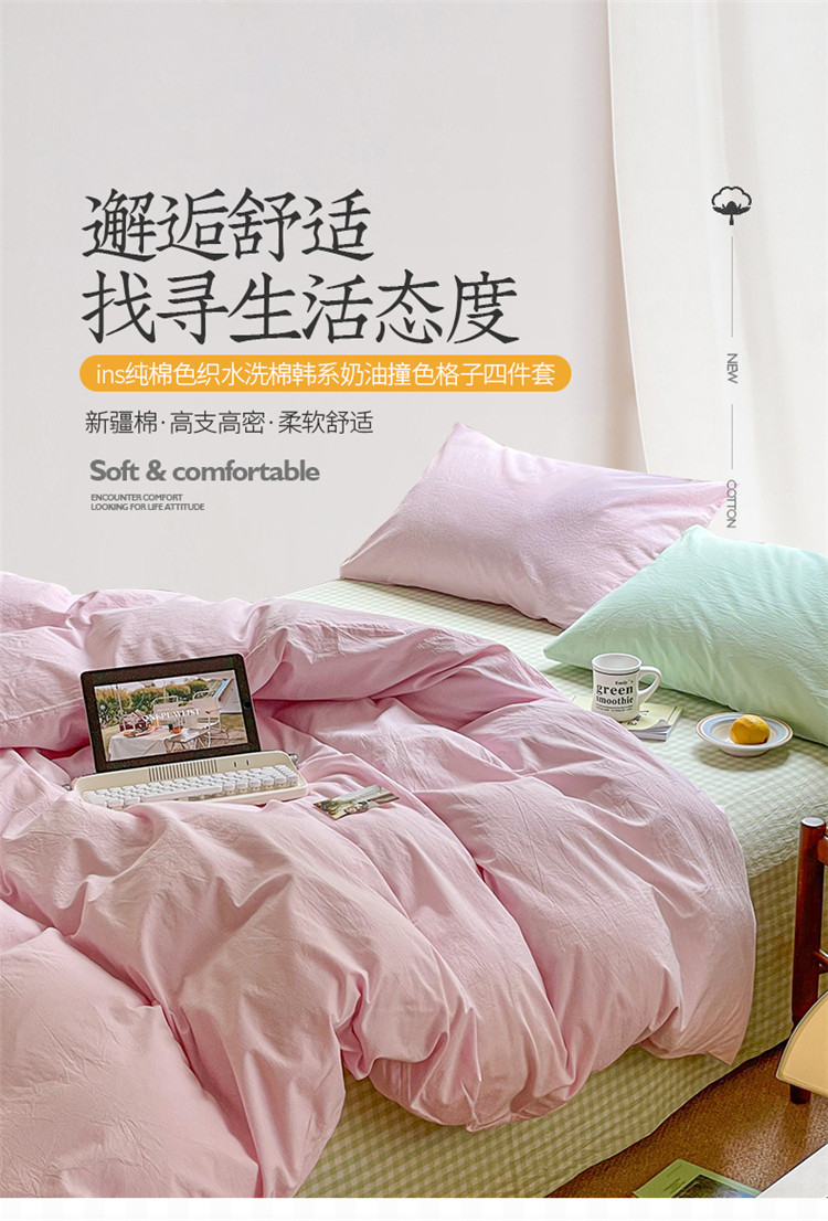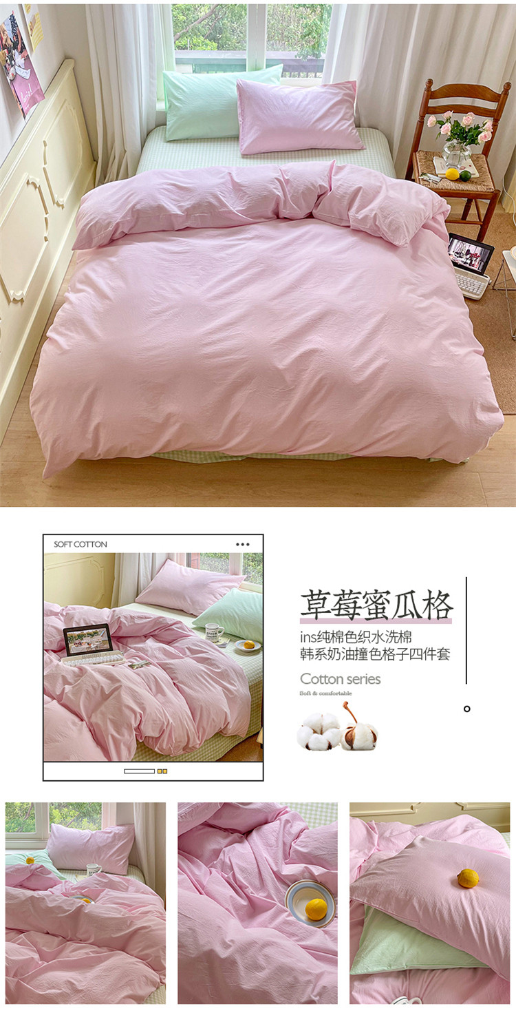 商品名称:桃子家居 ins纯棉色织水洗棉韩系奶油撞色格子四件套 草莓蜜瓜格
