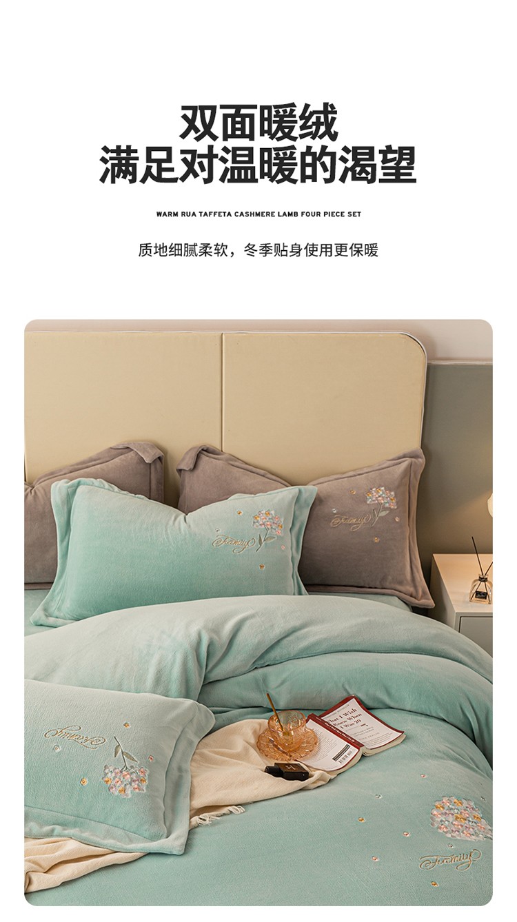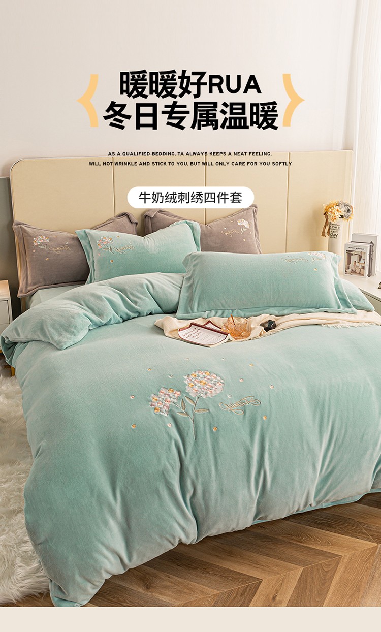 (总)名品优仓 2025新款220克牛奶绒绣花四件套-珊瑚,珊瑚-宝石蓝,珊瑚-粉色,珊瑚-姜黄,珊瑚-米杏,珊瑚-沫粉,珊瑚-杏粉